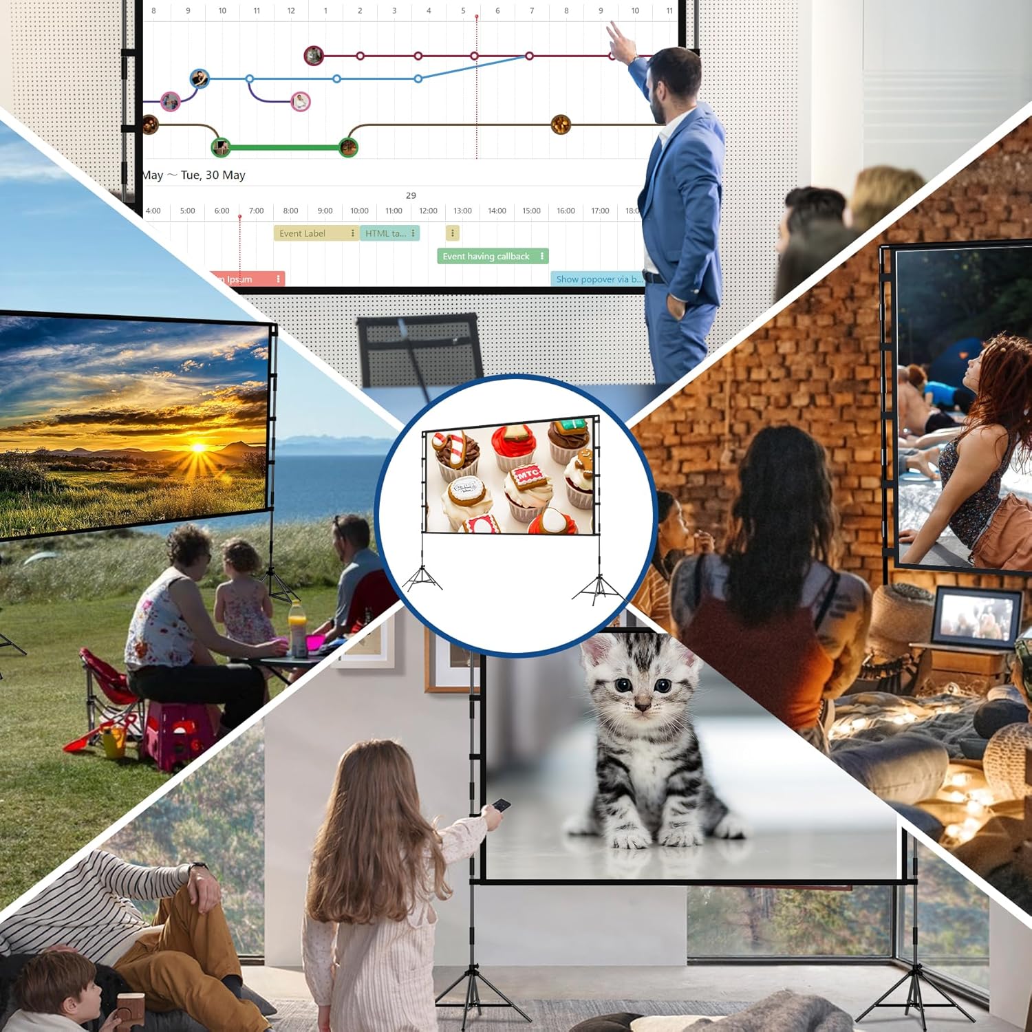 - Portable and Foldable: The portable projector screen is lightweight and portable, making it easy to carry and set up anywhere. It can be quickly folded and stored in a small space when not in use, saving you valuable space.Portable and Foldable: The portable projector screen is lightweight and portable, making it easy to carry and set up anywhere. It can be quickly folded and stored in a small space when not in use, saving you valuable space.