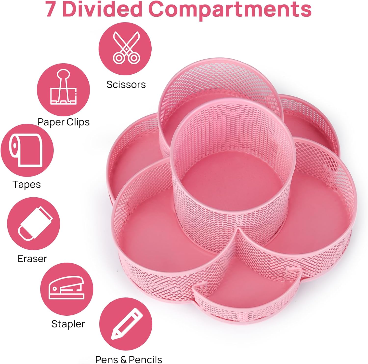 Pink Pen Holder for Desk, Rotating Pencil Holder, Cup Holder for Desk Office, Pen Organizer