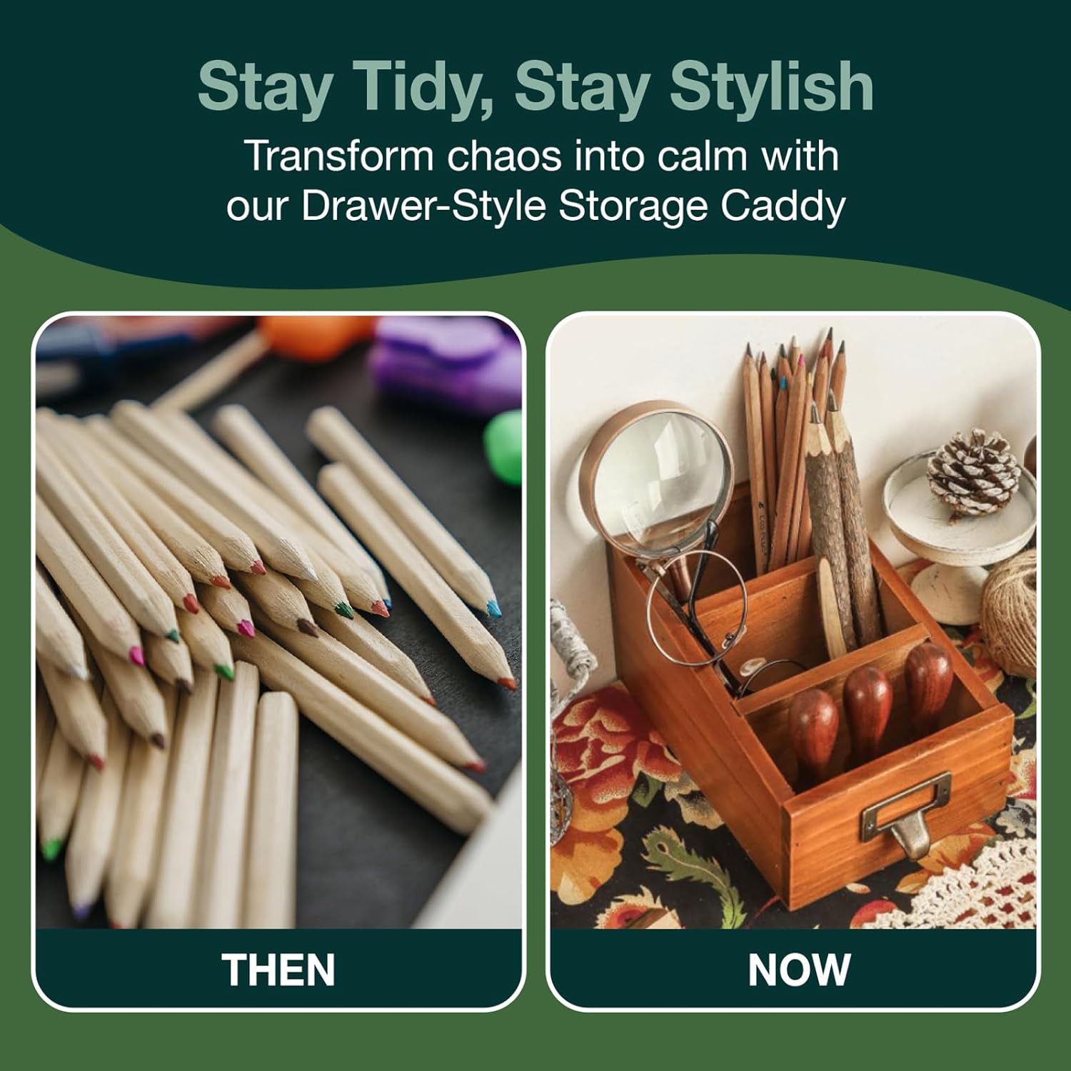 - Tailored for Your Satisfaction: Committed to sustainability and quality, Woodaholic products deliver accessible home solutions. Should our desk organizer caddy fall short of your expectations, please reach out to us. We're dedicated to ensuring your satisfaction.
