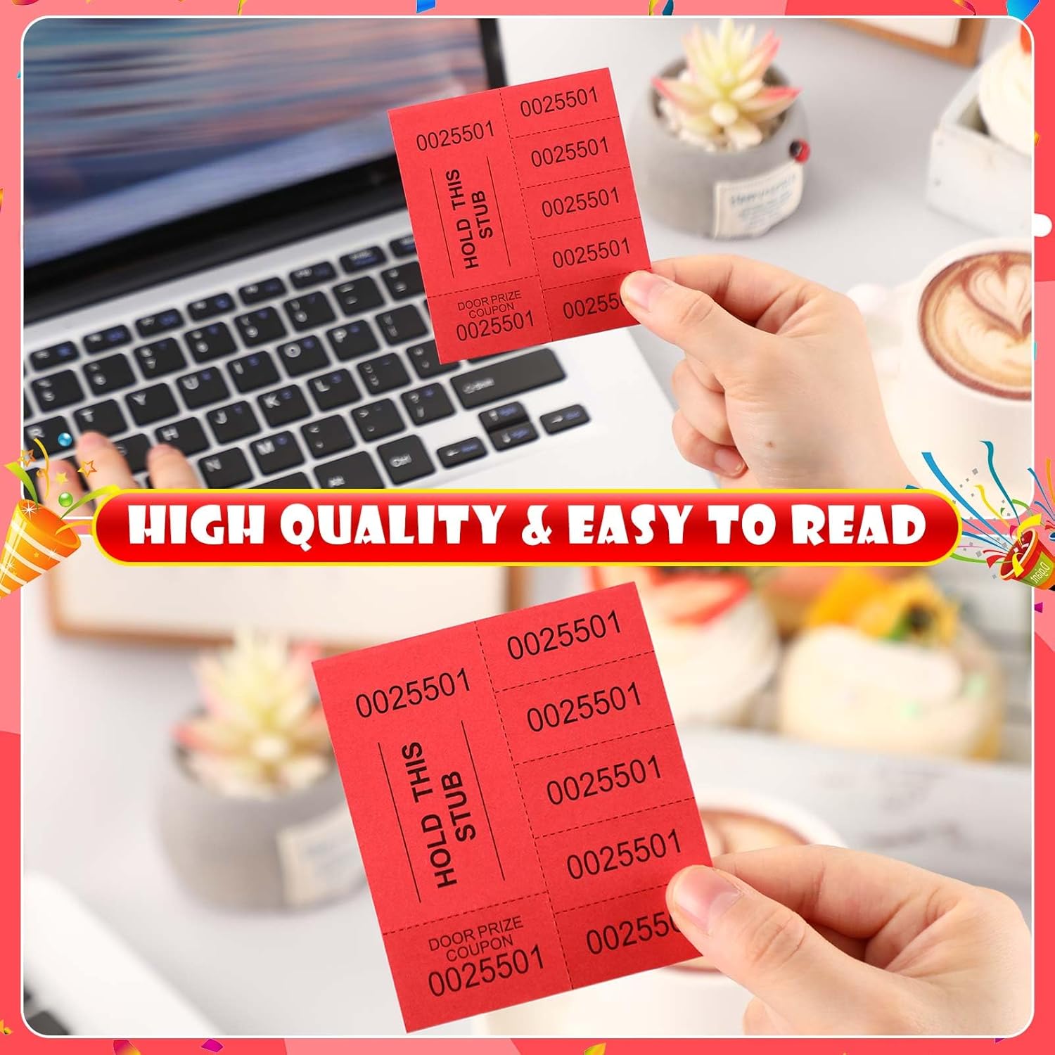 - Various Colors: these raffle tickets manufactured from paper with a smooth, flat surface and a medium thickness for stability; They're crafted with clean perforations for effortless tearing, It should be stated that each ticket book has numbers, and every book comprises 7 identical numbers, including 2 stubs and 5 bid numbers. Please keep in mind that it's not possible to select the beginning number for each batch