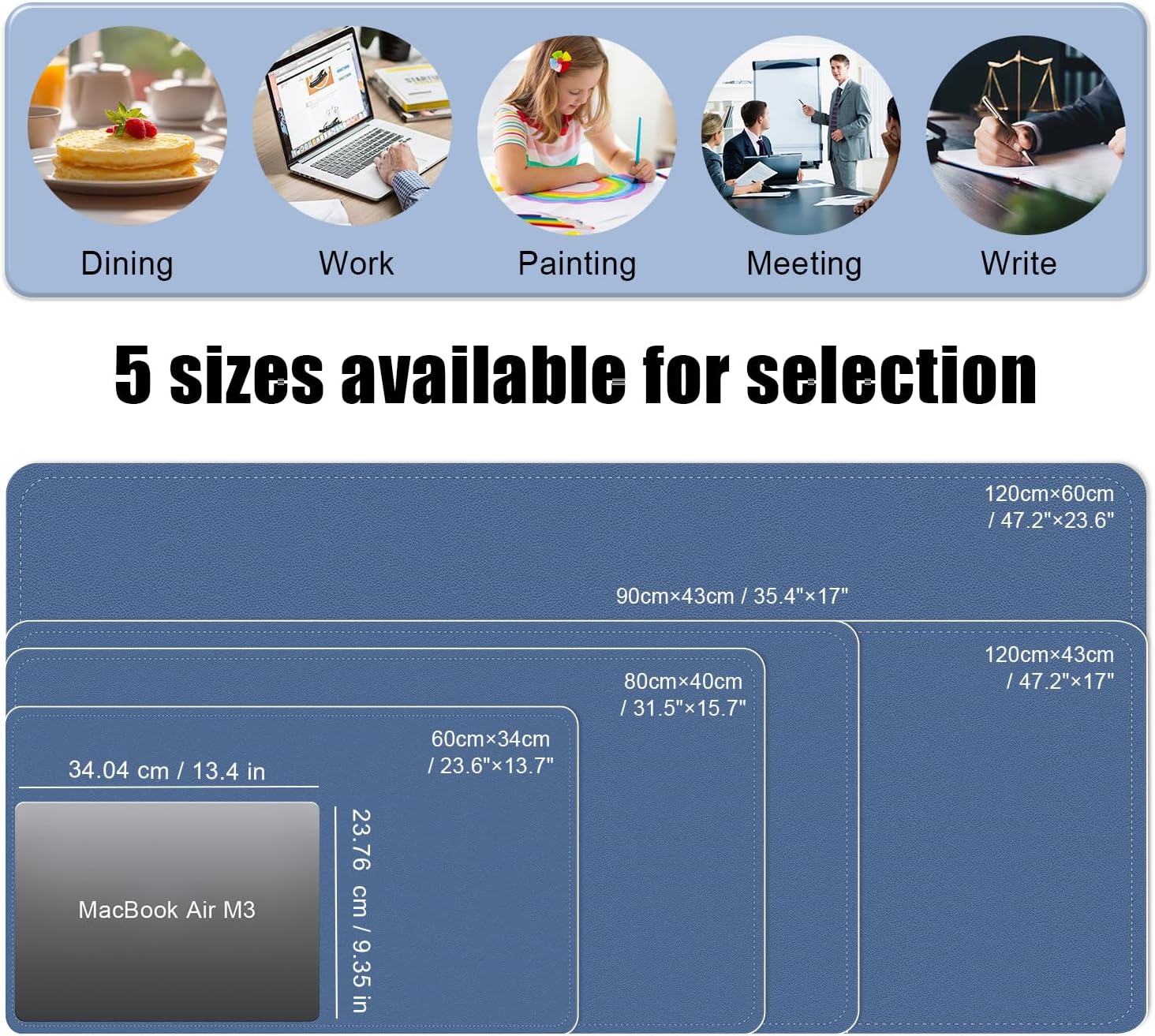 BLESWIN Large Desk Pad, 47.2'' x 23.6'', Office Desk Mat, Computer Mat for Desk, Leather Desk Pad Protector, Sewing Desk Blotter, Desktop Writing Pad for Office/Home/Decor Lake Blue