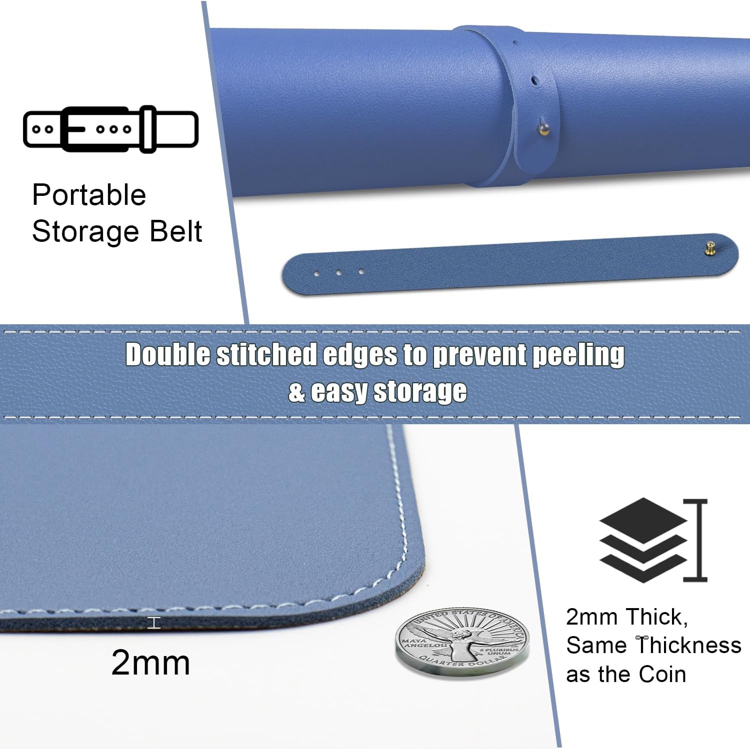 - 🖱️ 🖱️Versatile Usage Large Mouse Pad: Leather computer pad in 5 sizes and 10 colors. A portable storage strap allows you to roll up the desk pad and take it with you. Accommodate a laptop, mouse, and keyboard, which can be used as a mouse pad, for writing, and painting. A great choice for office work, and home.