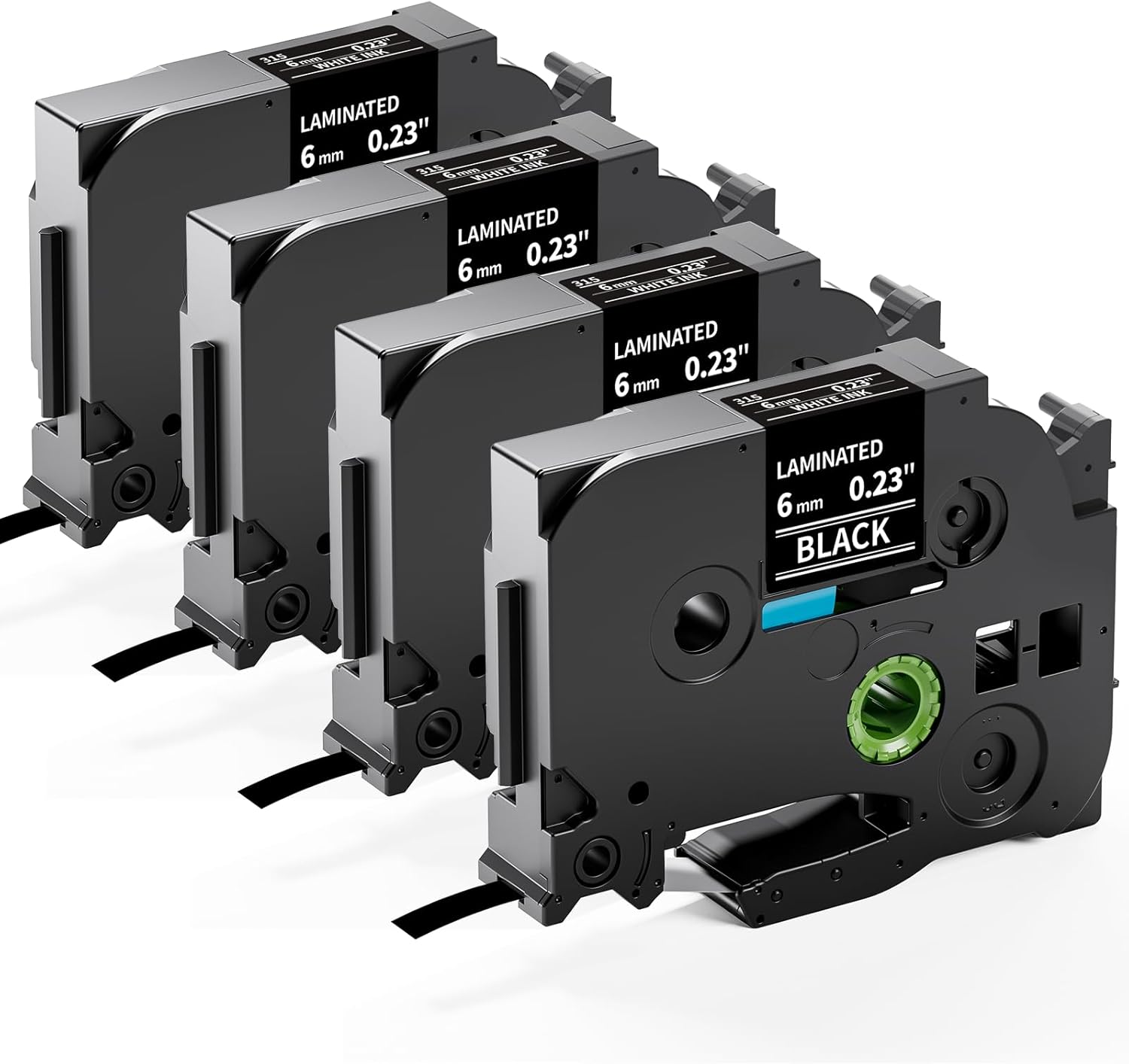 - Package: 4 packs compatible with Brother p touch TZe TZ Tape 6mm 0.23'' 1/4'' laminated white on black. Model: TZe-315 (TZe315 TZ-315 AZe-315).