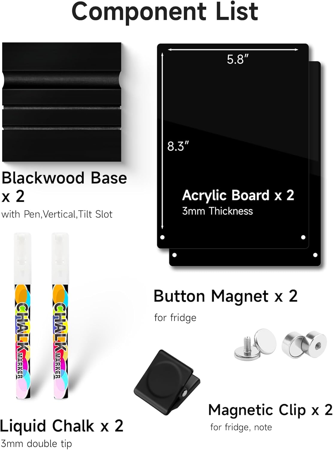 2 PCS Desktop Black Dry Erase Board with Stand - 8” x 6” Small Acrylic Black Board with Marker and Magnetic Clip, Reusable Desk Notepad, to-Do List, Menu Board Signs for Bar, Office, Home