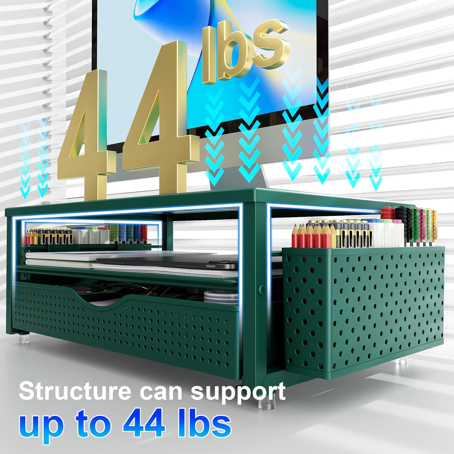- 【Unique Desk Decor】: The monitor stand has a classic green coating, adding elegance and modernity to your office while being sturdy and practical. allowing you to work in a cozy and tidy environment with greater comfort and efficiency.