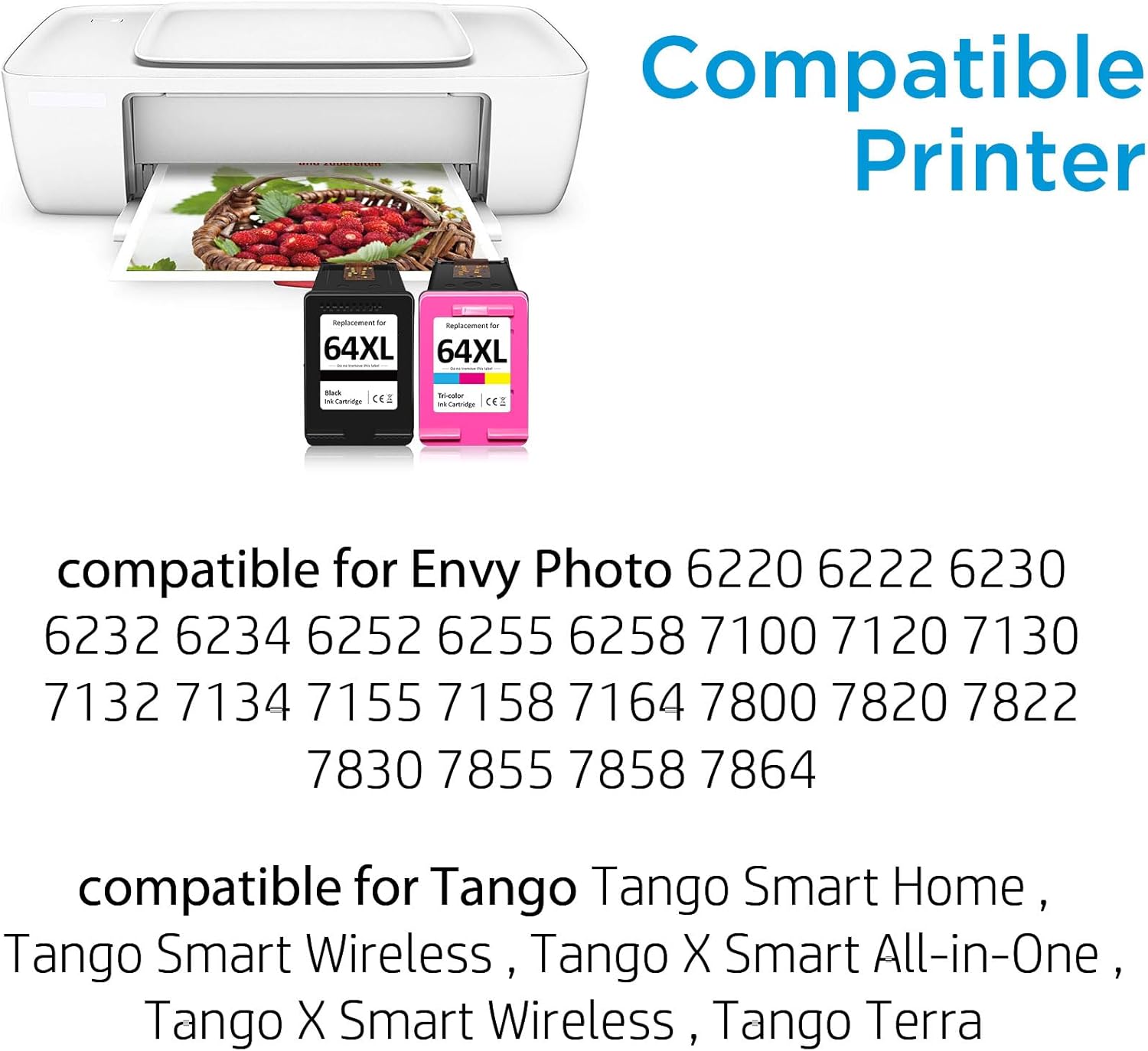 - Printer ink 64 xl works for printers: compatible for Envy Photo 6220 6222 6230 6232 6234 6252 6255 6258 7100 7120 7130 7132 7134 7155 7158 7164 7800 7820 7822 7830 7855 7858 7864 Printer