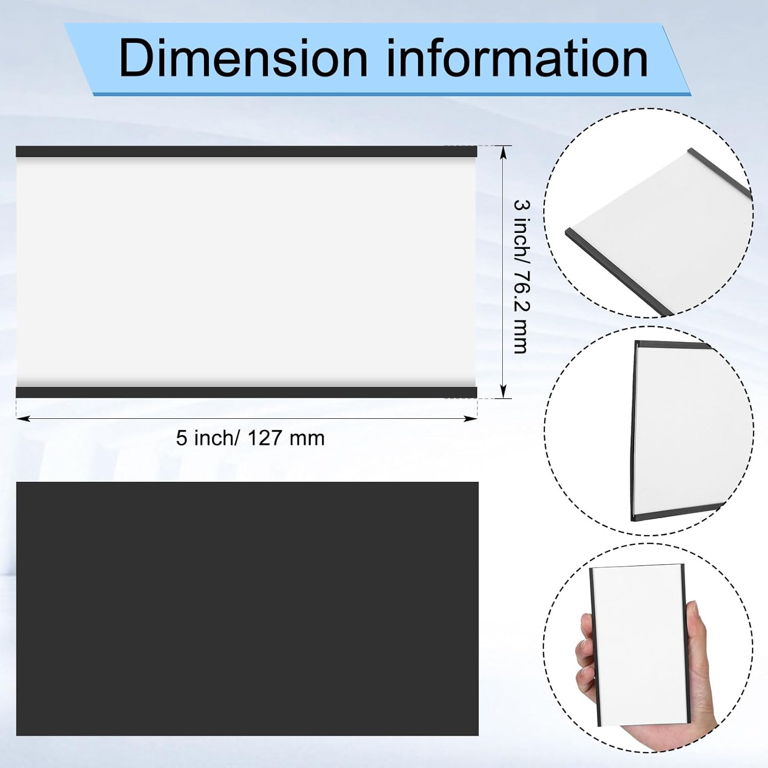 - Ideal Dimension: with a size of 3 x 5 inch, these magnetic shelf label holders are adequate to hold essential data for easy identification; They are practical for warehouse shelves, retail, libraries, or office settings; These holders leave no scope for ambiguity, improving your organizing prowess