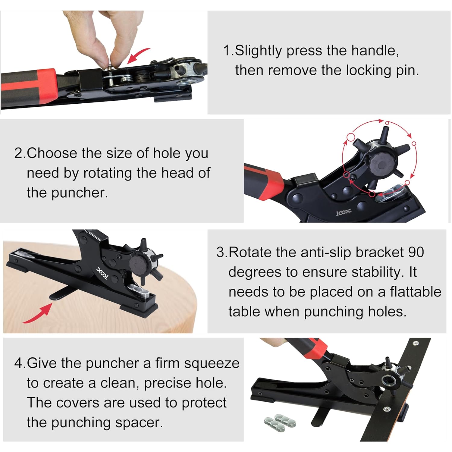 - Easy to Use: Equipped with a CR-V cutting head, this hole puncher ensures effortless pressing and precise cuts. Its thickened spacer and safety locking mechanism provide easy punching and accurate results every time, suitable for both beginners and experienced artisans.