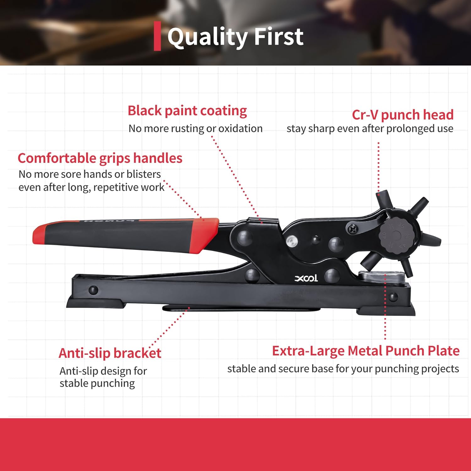 XOOL Oval & Round Holes Belt Hole Puncher for Leather, Precision Multi-Size Leather Hole Punch for Watch Bands, Straps, Collars, Saddles, Shoes, Fabric, DIY Home, Craft Projects