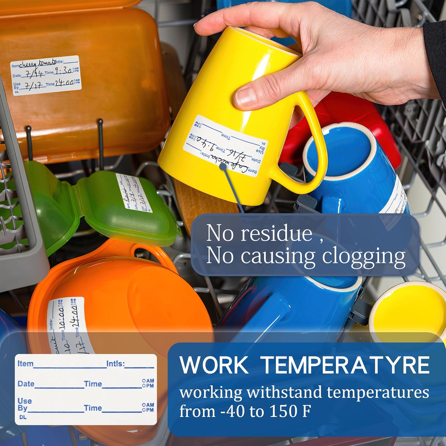 - NO RESIDUE : These food labels are made to fully dissolve in water, leaving no sticky residue on containers so you can easily use them.