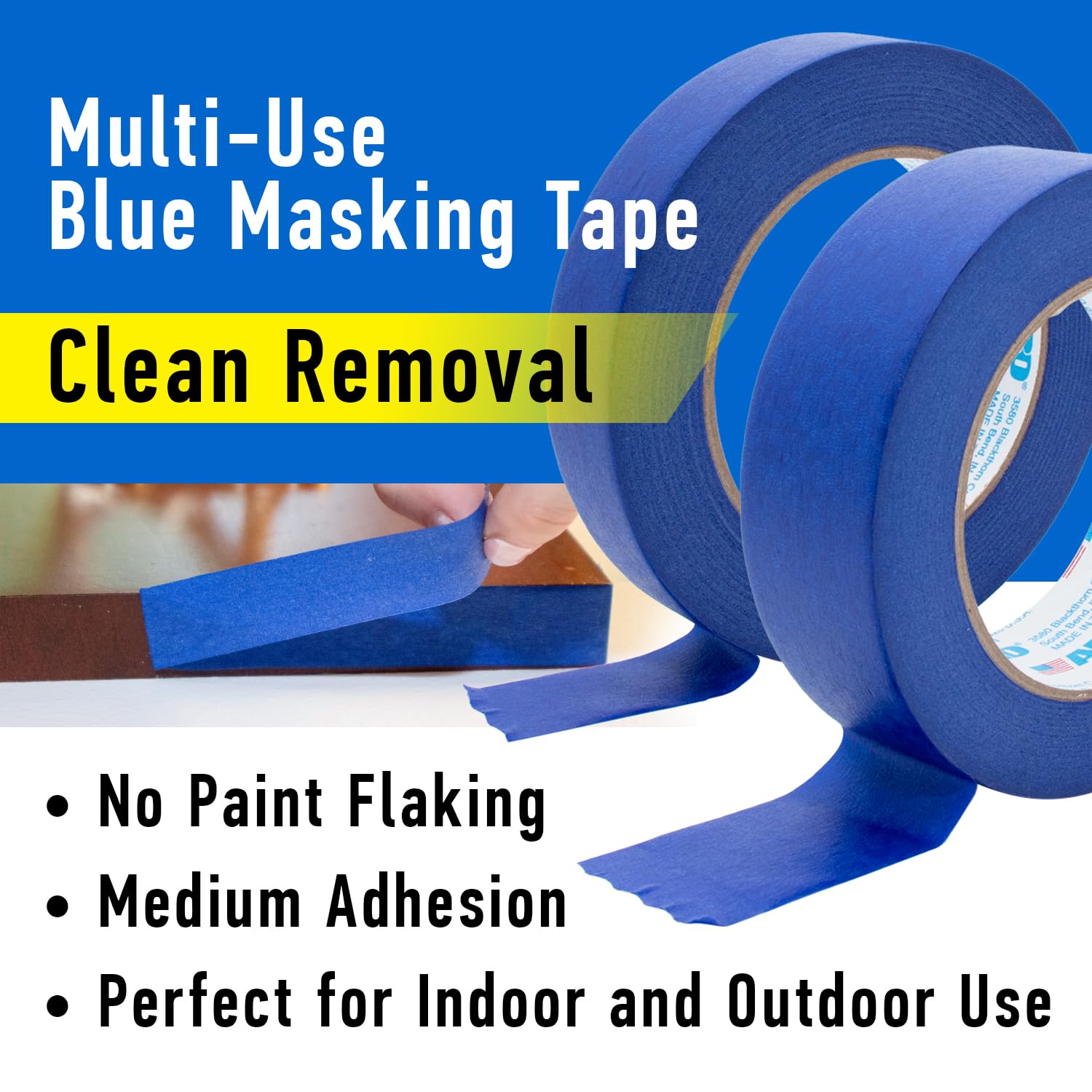 - Versatile Blue Painters Tape for Multiple Surfaces: Versatile wall tape compatible with various materials like plastic, metal, wood, and glass—perfect for all your indoor masking needs.