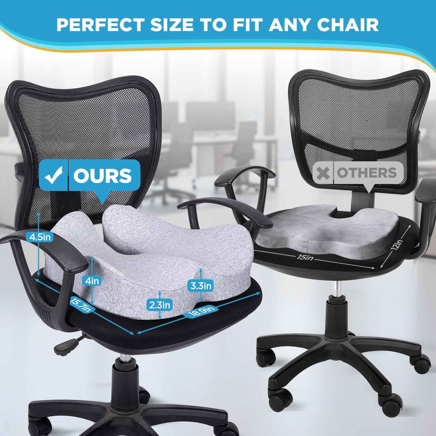 - 🏅【Effortless Customer Support】Transform your uncomfortable chair with our ergonomic seat cushion – a cost-effective solution to enhance comfort without replacing your chair.Take it anywhere, enjoy ultimate comfort wherever you sit. We're committed to exceptional customer service. If you're not satisfied with our seat support cushion, no need to deal with the hassle of returns – simply reach out to us for a solution.
