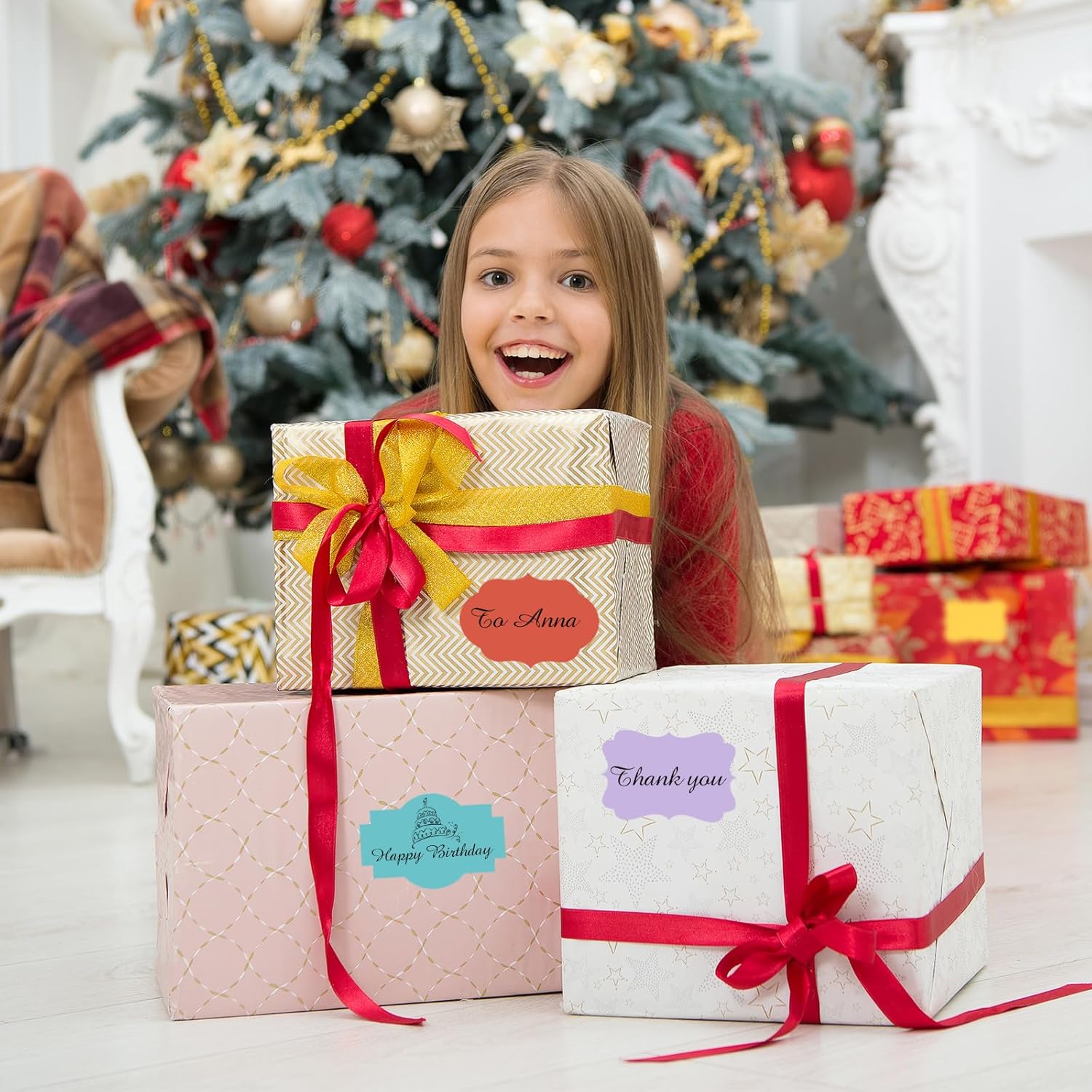 - 【Widely Usage】Just need to peel off the sticker, write words and stick them where you want. With different color paper element, these sticker labels can not only be applied as Christmas gift tags, but also for wedding, birthday, mailing labels, name tags, etc.