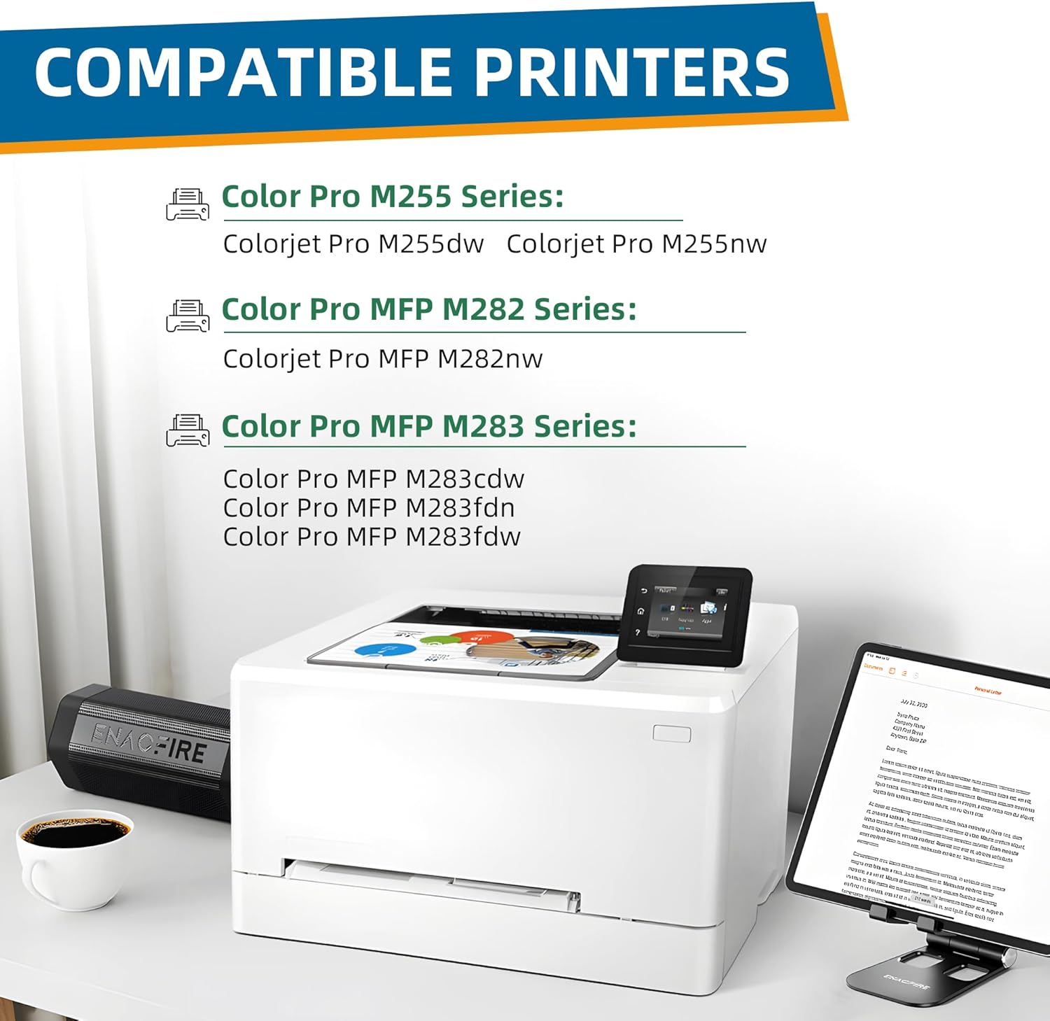 - Compatible Devices : color pro mfp m283fdw MFP M283cdw M283fdn, Color Pro MFP M282nw, HP Color Pro MFP M255dw, M255nw
