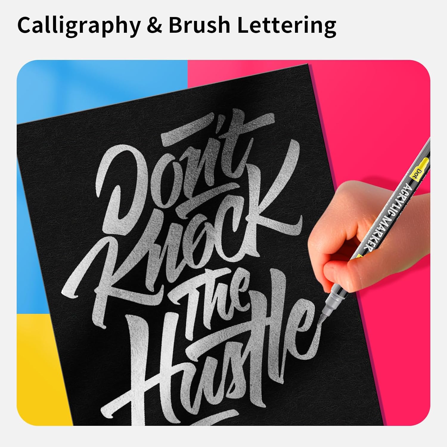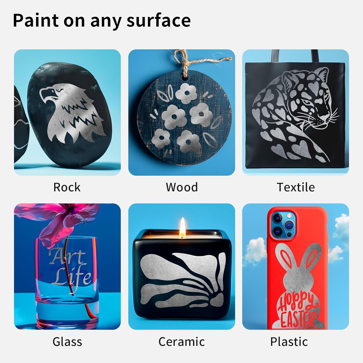 - PREMIUM QUALITY: This silver-pack of paint pens features high-quality acrylic paint and a durable nib that dries opaque, so you don’t have to make a second layer! The silver permanent paint marker is acid-free, waterproof and wear resistant. It’s a great tool for art projects, DIY crafts, coloring, greeting cards, poster making, painting, highlighting.