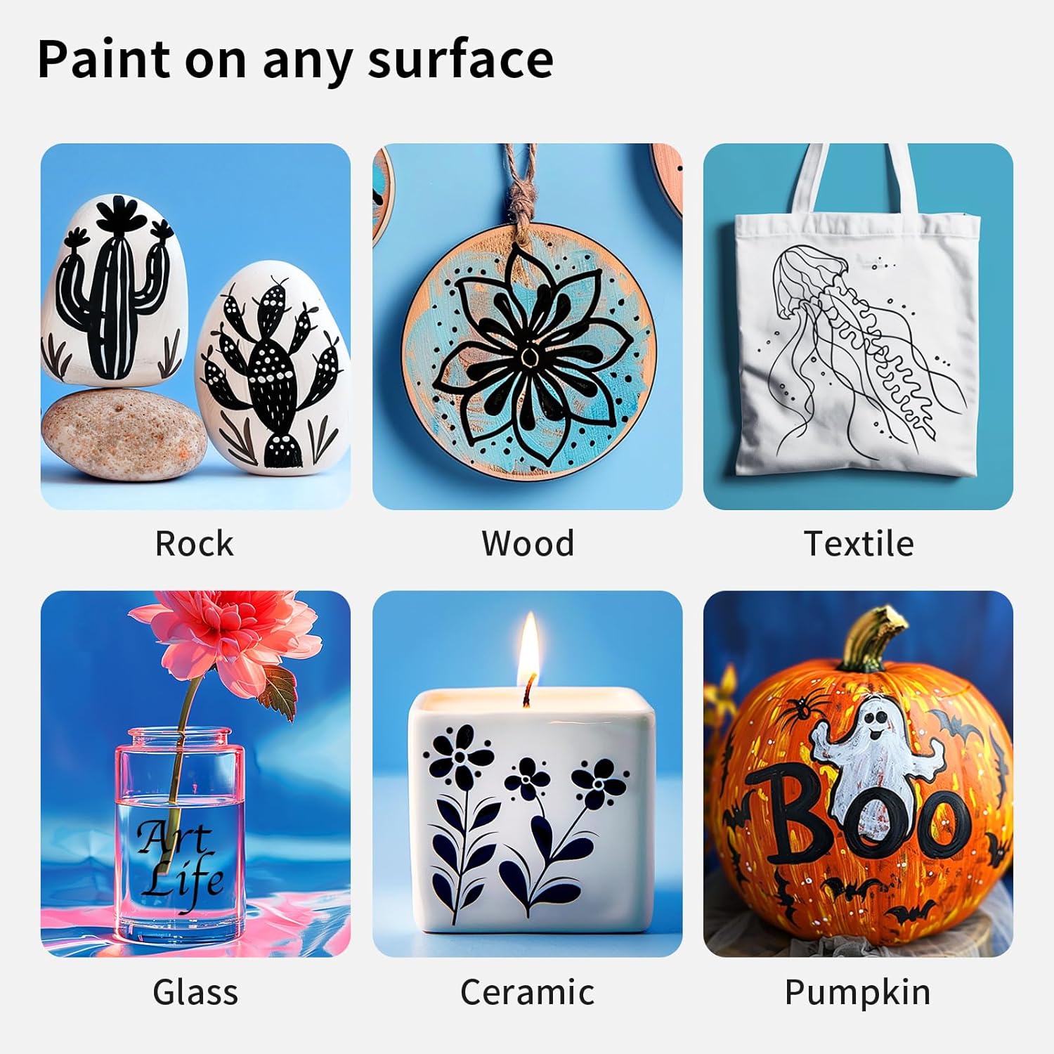 - WORKS ON ALMOST ANY SURFACES: NAWOD paint marker pens work on almost any surface. Paint on rock, canvas, wood, metal, glass, ceramic, plastic, tire, or more with these glass markers! Or use them as fine tip paint pens and paint markers for canvas. They are the best tool for creativities!
