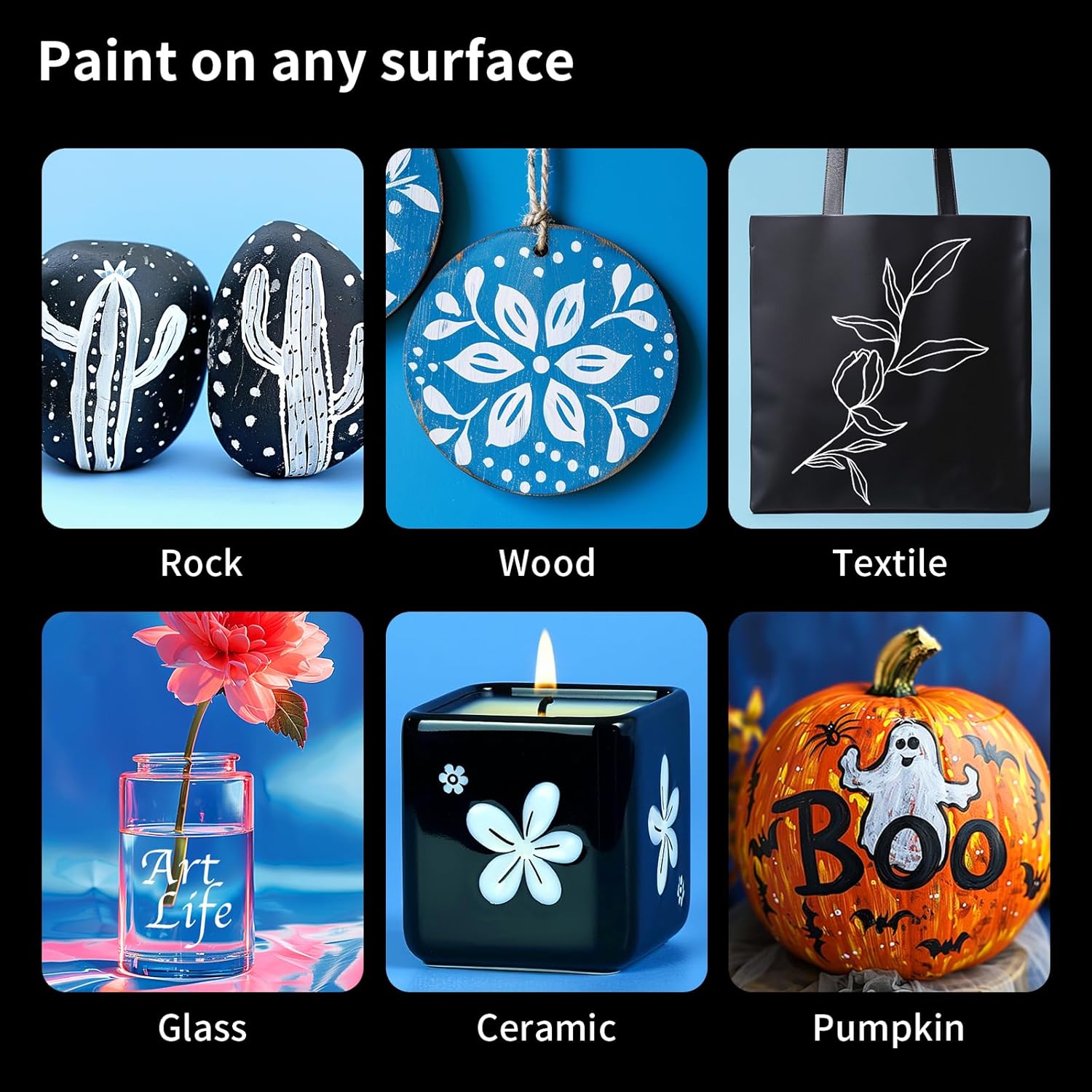 - WORKS ON ALMOST ANY SURFACES: NAWOD paint marker pens work on almost any surface. Paint on rock, canvas, wood, metal, glass, ceramic, plastic, tire, or more with these glass markers! Or use them as fine tip paint pens and paint markers for canvas. They are the best tool for creativities!