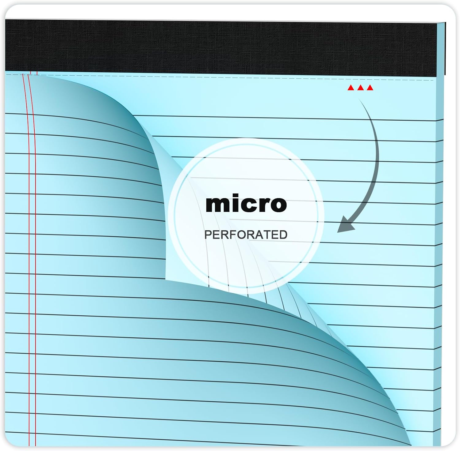- Blue colored Legal Pads 8.5 x 11 Inch are perfect for students, teachers, and professionals. Made with premium 80gsm thick paper, these notepads provide a luxurious writing experience. The colored paper resists ink bleeding, while the black lines and double red margin lines offer ample space for your notes.