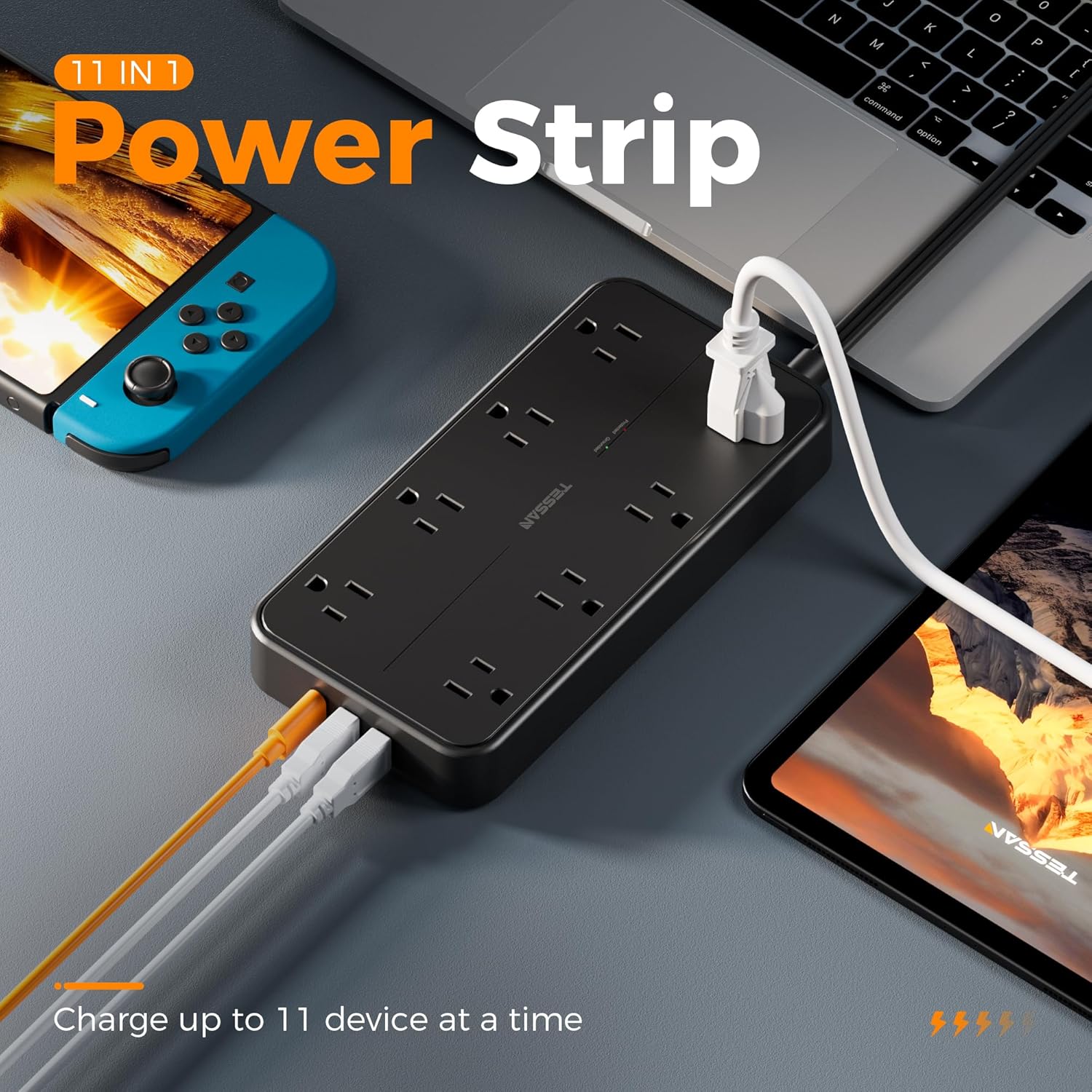 - 1080J Surge Protector Power Strip: Equipped with overload protection, short-circuit protection, over-current protection, and etc; Reliable on/ off switch can automatically shut off and protect your expensive electronics, providing you with a safe and reliable charging environment