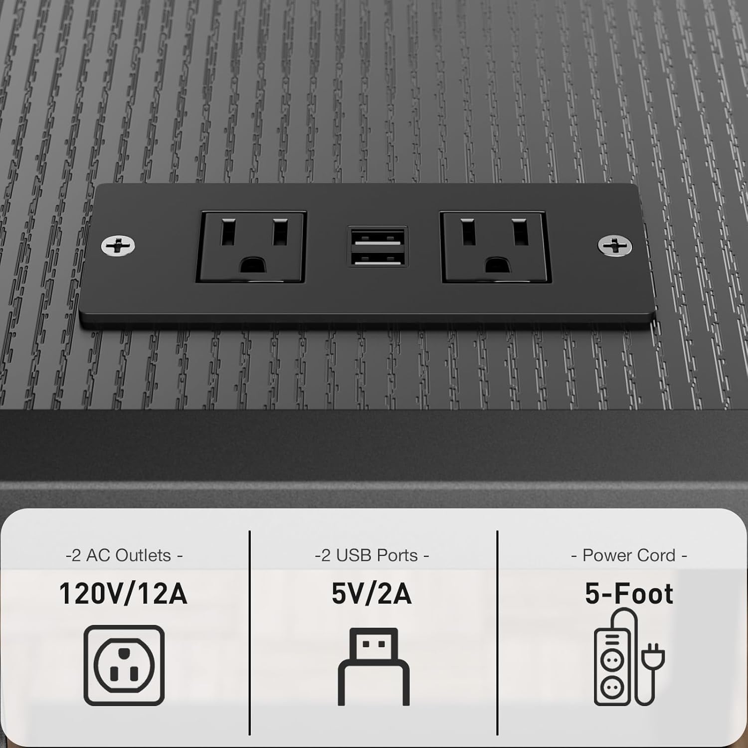 - PC Tower Stands with Charge Station: Introducing our PC tower holder for IT professionals with integrated power solutions – The integrated dual 120V/12A sockets and dual USB ports provide a clean and efficient way to power your laptop, smartphone, printer, tablet, or any electronic device. Maintain an orderly workspace while keeping all your gadgets conveniently charged and ready to use. Plus, the computer tower rack doubles as a side table,offering an additional power source for your desk lamp.