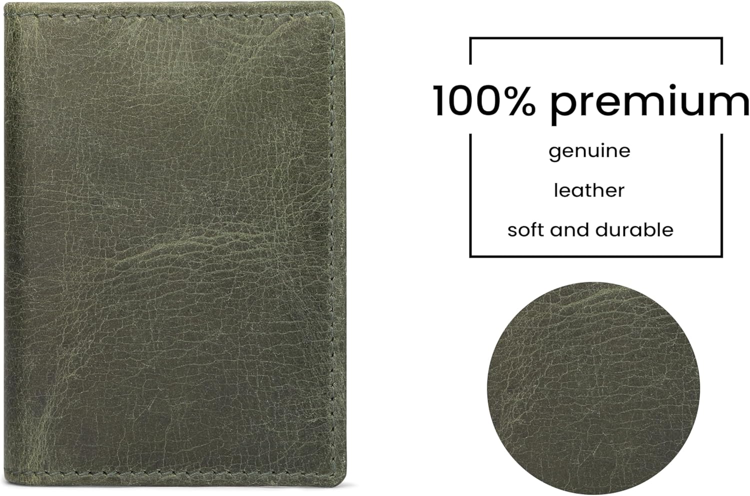Premium Leather Card Wallet, RFID Blocking Expandable Business Card Case, Bifold Card Holder for Men and Women, Men's Purse, Wallet for Men (Business Card Wallet, Green)