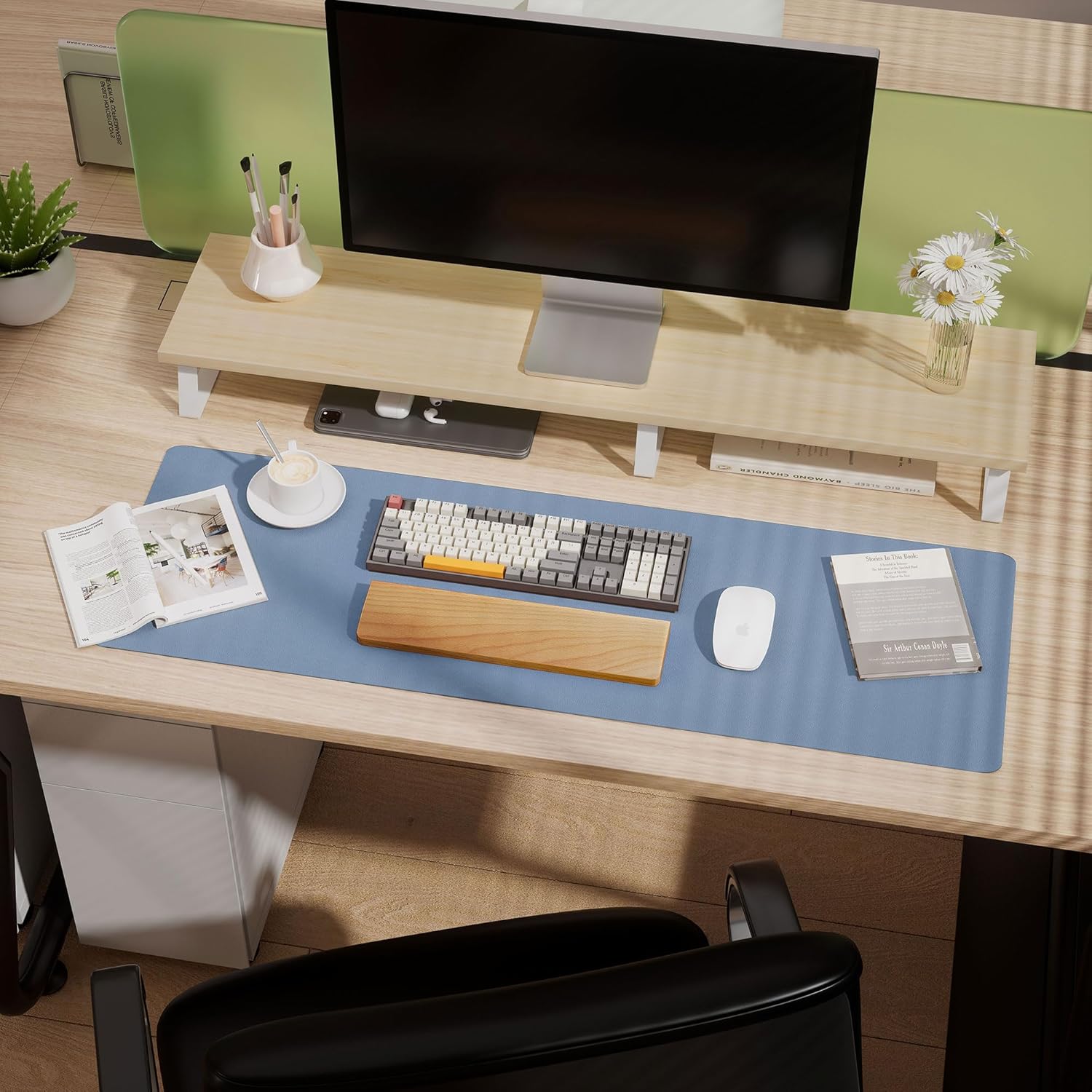 Aothia Leather Desk Pad Protector - Large Mouse Pad, Office Mat, Non-Slip PU Leather Blotter, Laptop Desk Pad, Waterproof Writing Pad for Office and Home (Denim Blue, 38" x 13.7")