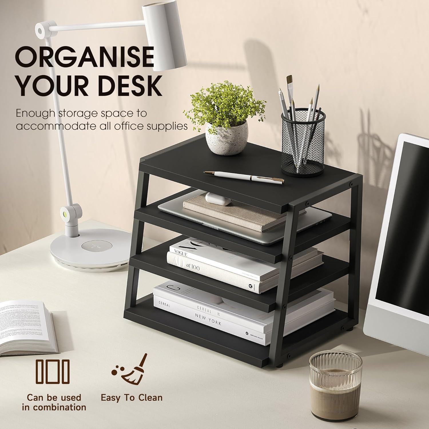 - 【Boost Your Efficiency】The Fenge 4 tier desk organizer features an innovative open design, allowing you to neatly organize A4 paper, notebooks, books and desk accessories. With its 4-tier structure, you can categorize and access various files effortlessly. Keep important documents and office supplies within easy reach for quick retrieval and avoid the hassle of searching through clutter.