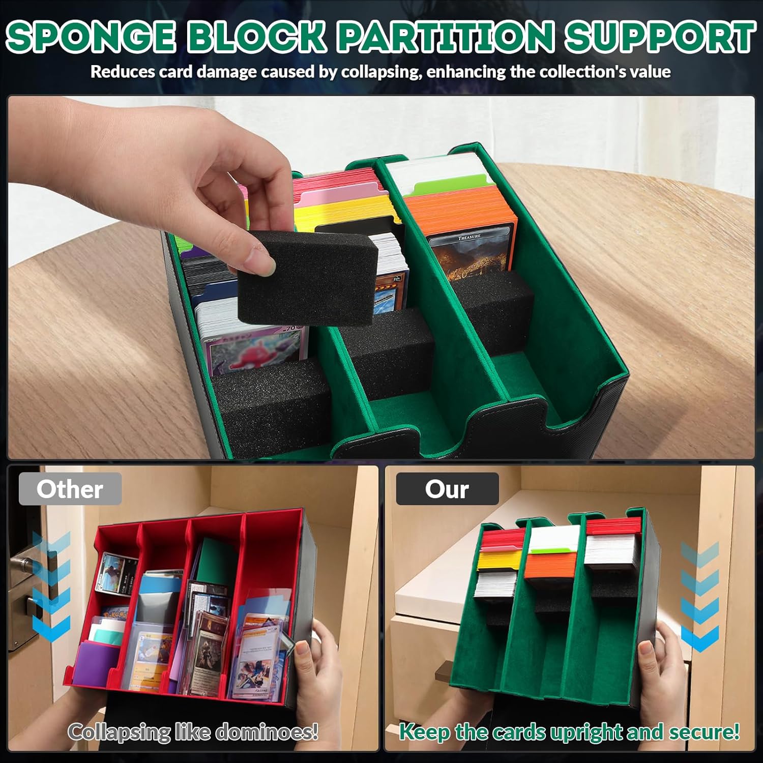 - ๐๐๐ฅ๐ฅ-๐๐๐ฌ๐ข๐ ๐ง๐๐ - Our TCG card storage box set elegantly showcases cards while ensuring organized storage. The included 3 foam stoppers allow the cards to stand upright even when the box is not fully filled, keeping them secure and preventing warping, accidental movement, or damage.