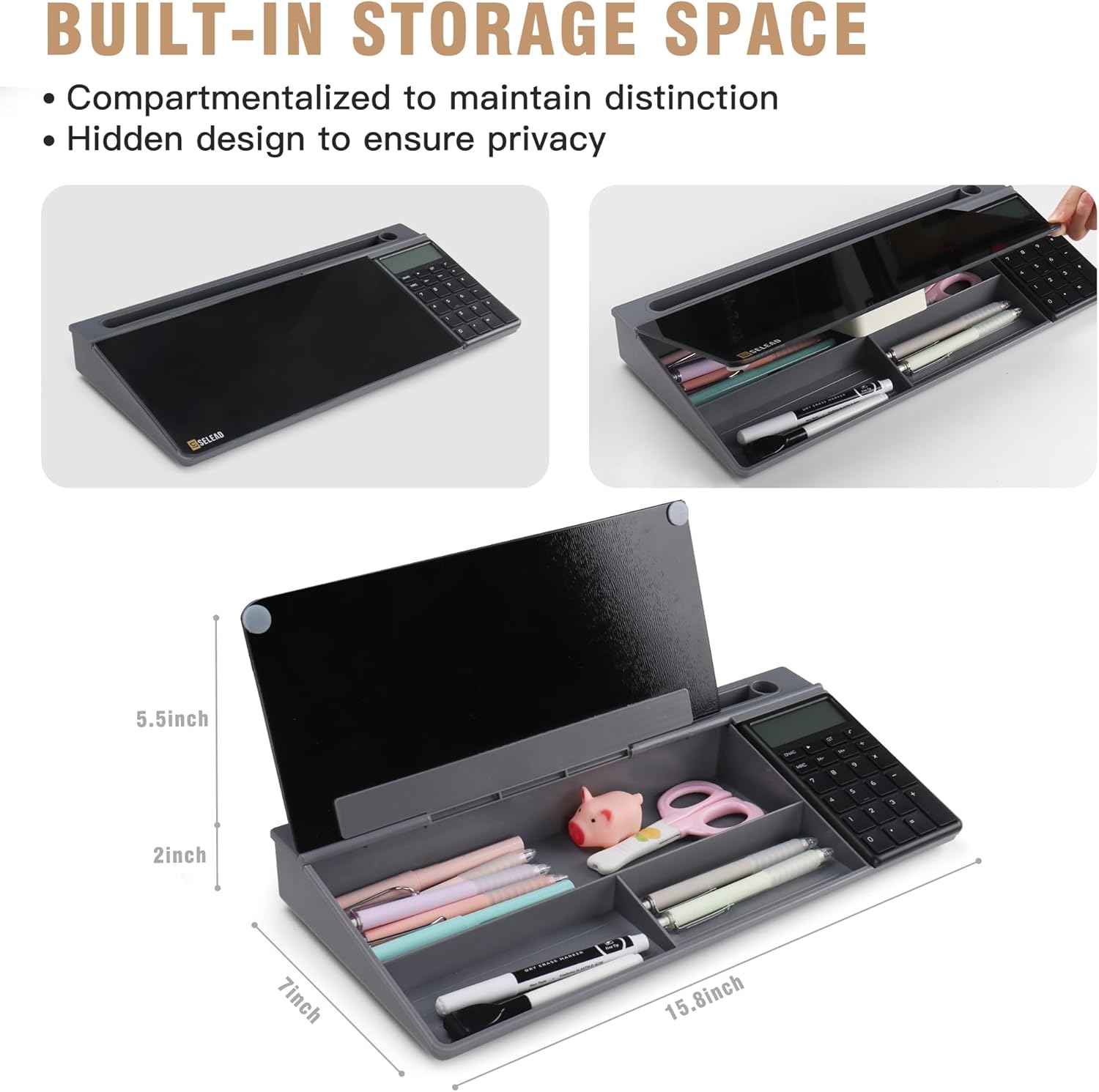SELEAD Desktop Glass Whiteboard with Calculator, Organizer, Markers, Eraser, Holder - Black Dry Erase White Board Computer Pad Keyboard Stand for Home, School, Office Desk Cubicle Accessories