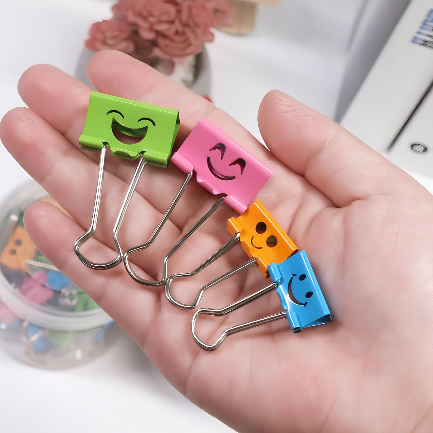 Coideal Smiley Binder Paper Clips - 100 Pcs Assorted Sizes and Colors, Metal Colored Fun Clip Clamps with Cute Smiling Face Design for Office (19mm & 25mm)