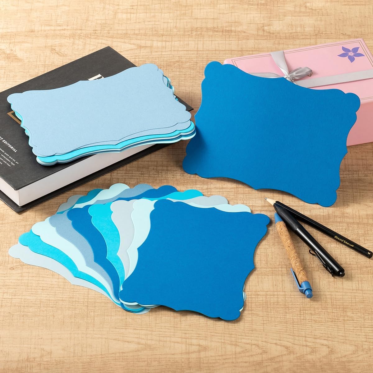 50 Pack Blank Kraft Cards Cardstock Thick Paper Brown Greeting Cards for DIY Gift Card Menus, Baby Shower and Wedding Invitations (Blue, 5 Colors, 5x7IN)