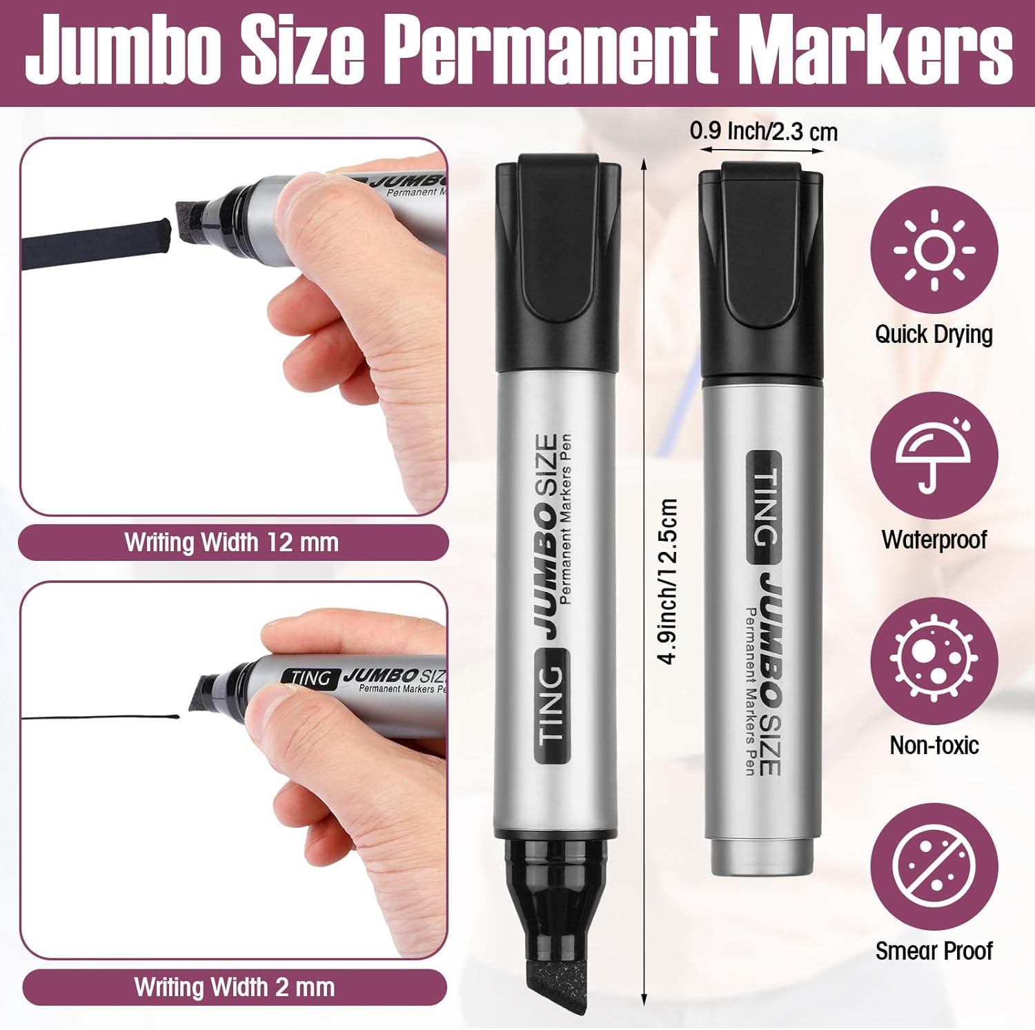 - Works on Various Surfaces: whether it's wood, foil, boxes, poster board, concrete, stone, tile, brick, metal, plastic, vinyl, or wax paper, these jumbo permanent markers bulk can leave firm and prominent marks on various surfaces