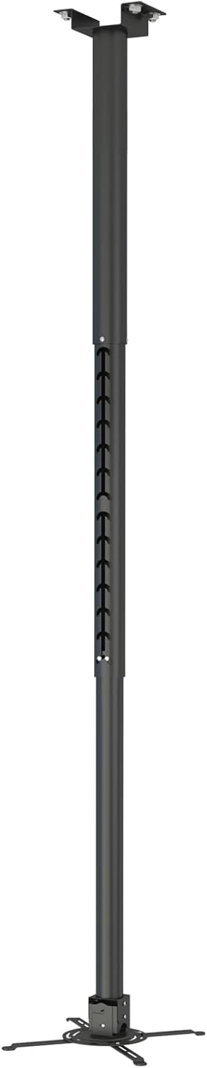- Universal Compatibility: The SCREENPRO ceiling projector mount is designed to fit most mainstream home projectors on the market. Its black powder-coated finish blends seamlessly into the decor of most homes and offices. The adjustable base arms extend from 3.7 inches to 13.4 inches, accommodating various projector mounting patterns.