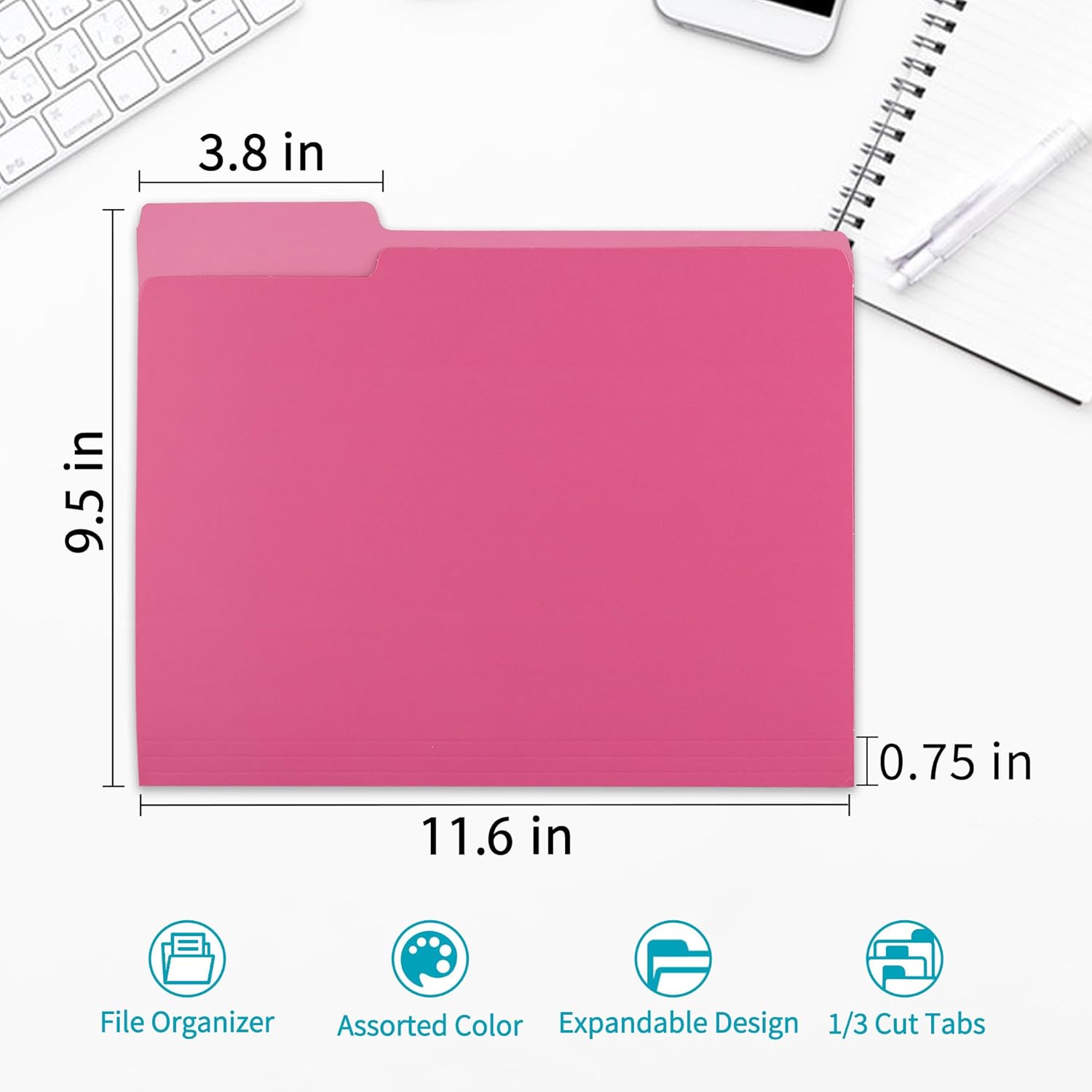 Two Tone Color File Folder 8.5 x 11 Inch,100 Packs Pink File Folders,1/3 Cut Tabs File Folder Letter Size,Manila File Folders for Office,School and Home,Organization