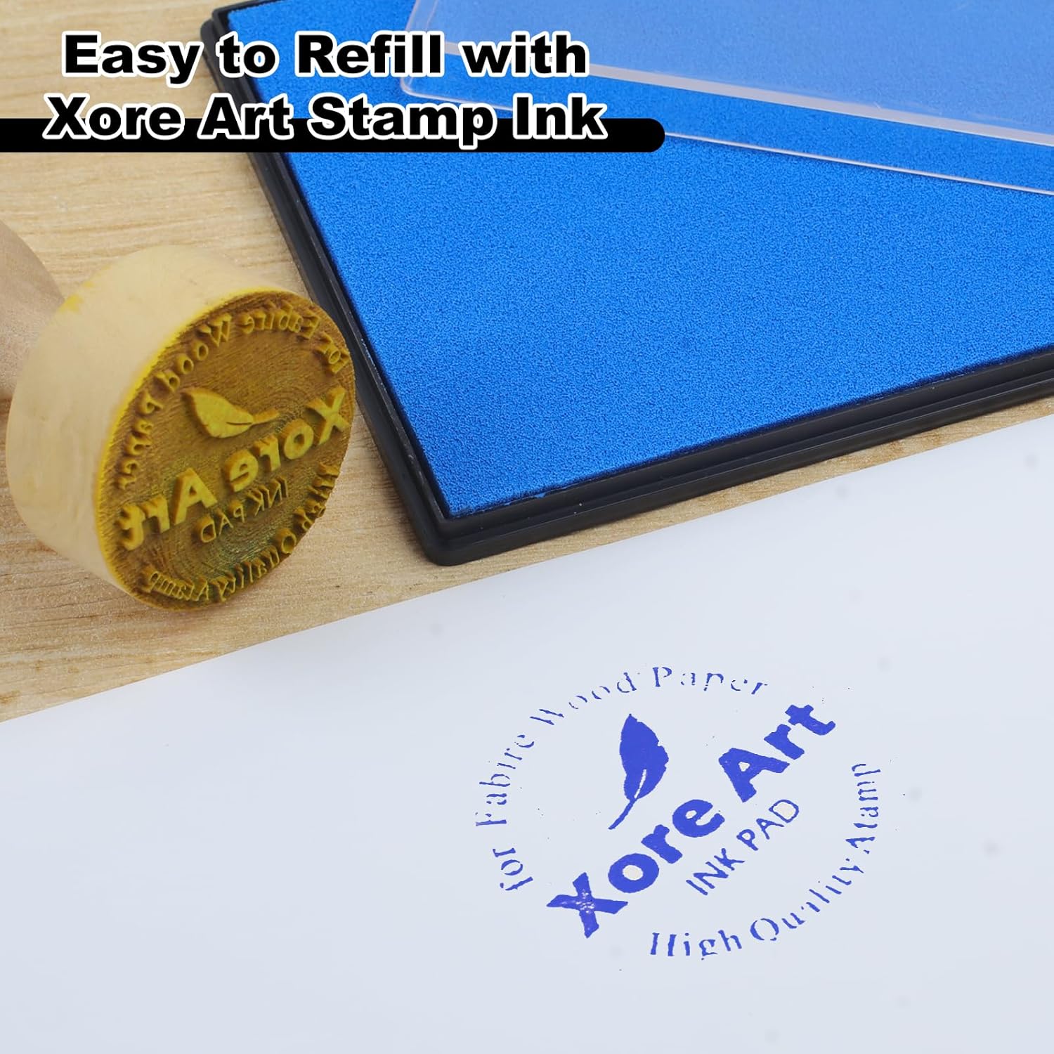 - 【Package Includes】Stamp pad kit includes blue ink pad and 30ml blue water-based ink. Easy to refill XoreArt stamp pad, 6 colors to select-sky blue,red ,pink ,black ,light green ,yellow.