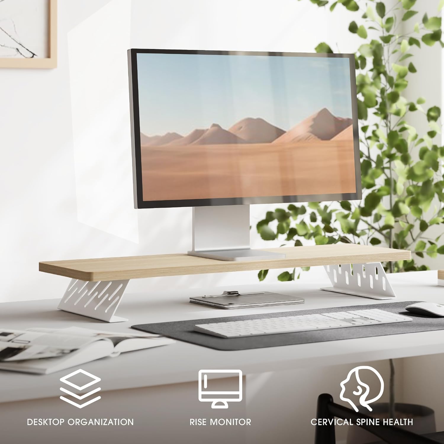- 【Monitor Stand for Desk】To ensure fenge monitor stand can be used permanently, we have adopted high-quality thickened panels and metal legs. With heavy-duty steel base, so you don't have to worry about collapse or shaking during use. Each desk leg is equipped with a non-slip pad to prevent the table from being scratched. The maximum load-bearing of the monitor riser can reach 55 pounds.