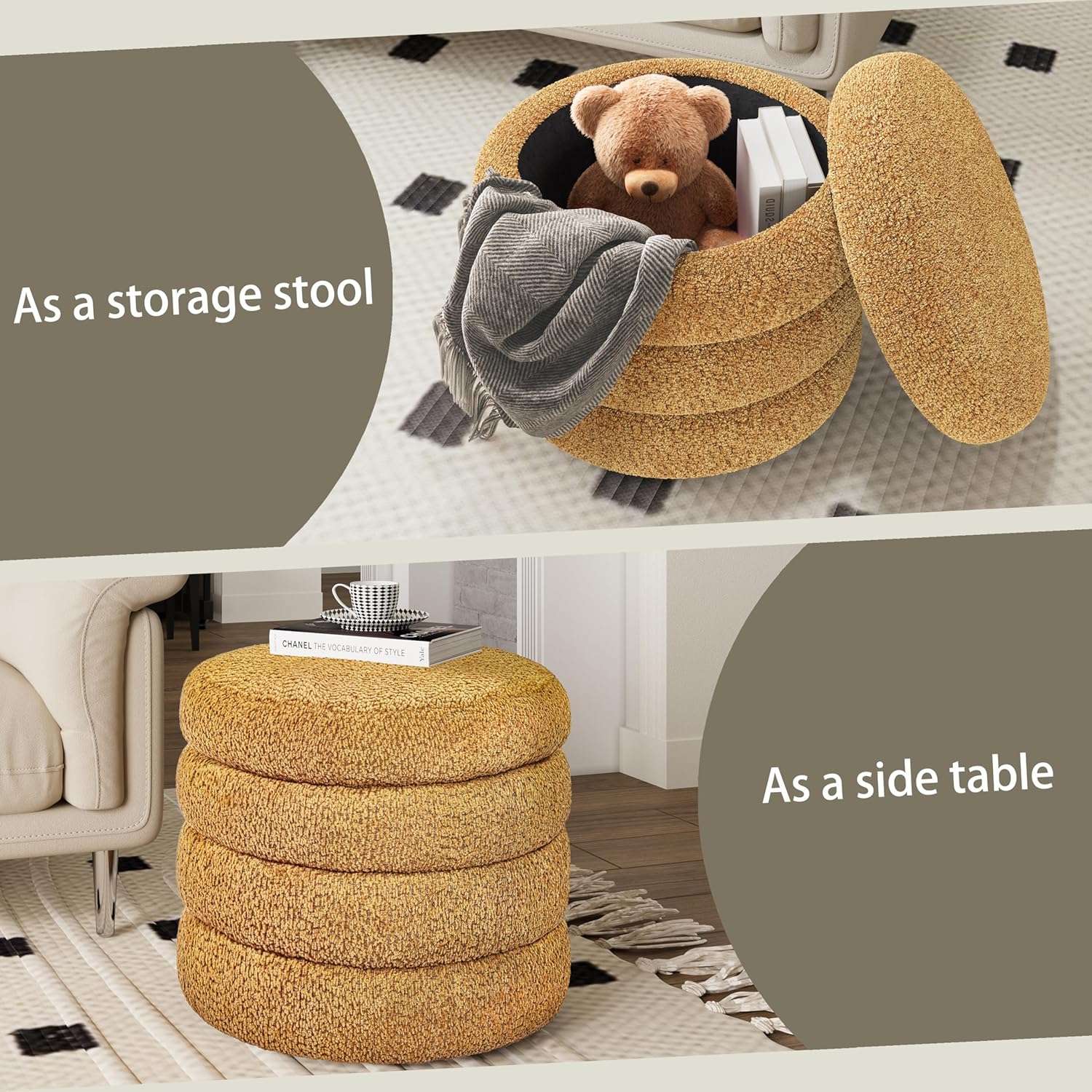 Storage Ottoman, Round Ottoman with Storage, Vanity Stool Foot Rest with Removable Lid, Round Boucle Upholstered for Living Room Pouf Footstool