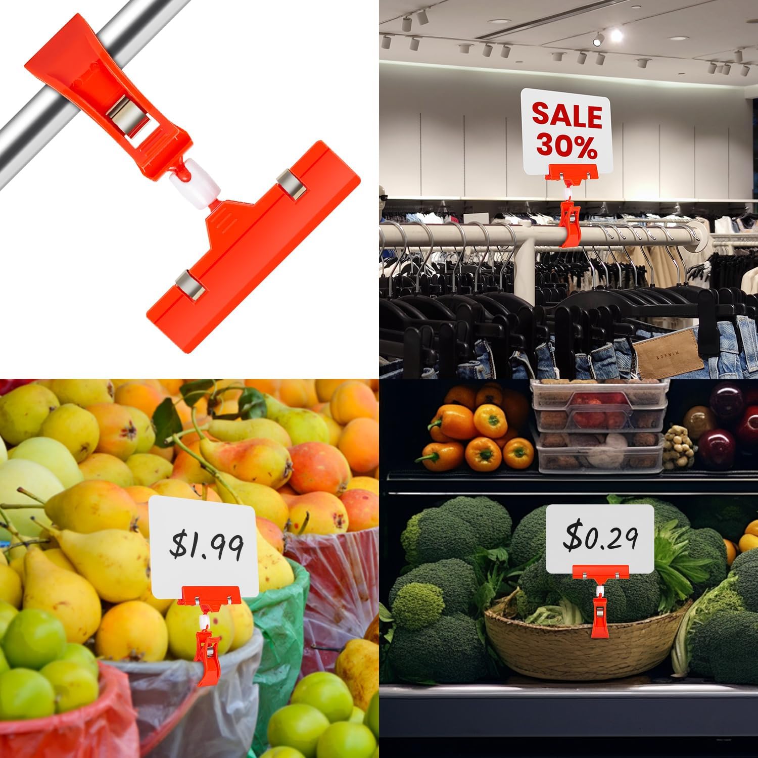 - 【Rotating Clips】- The double sided pop sign holder clips are 360 degree adjustable to support the most comfortable viewing position, easy to use, bringing you more convenience. Suitable for cylindrical objects, plates, square tubes, partitions, round tubes, rack, shelf, etc.