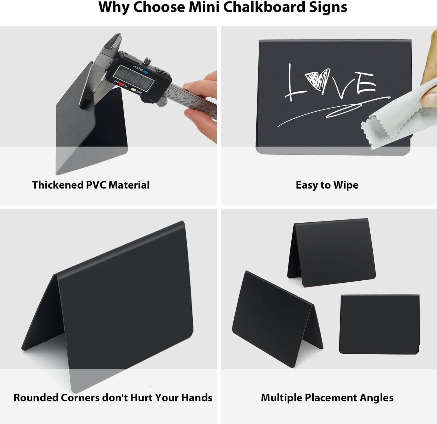 - Perfect Chalkboard Sign: Small chalkboard Made of matte black plastic material, it is waterproof, drop-resistant, durable and can be used many times.