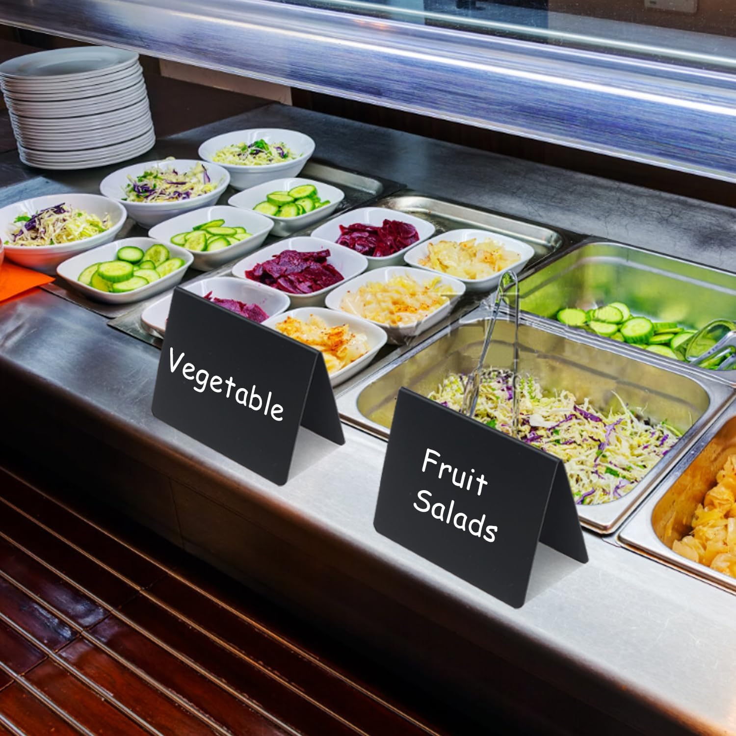 - Versatile Solution With Buffet Signs: Our food labels for party buffet made of sturdy plastic. They offer good toughness, lightweight and compact easy to carry, a minimalist design and a budget-friendly price, making the food tags an ideal alternative to acrylic and wood chalkboards.