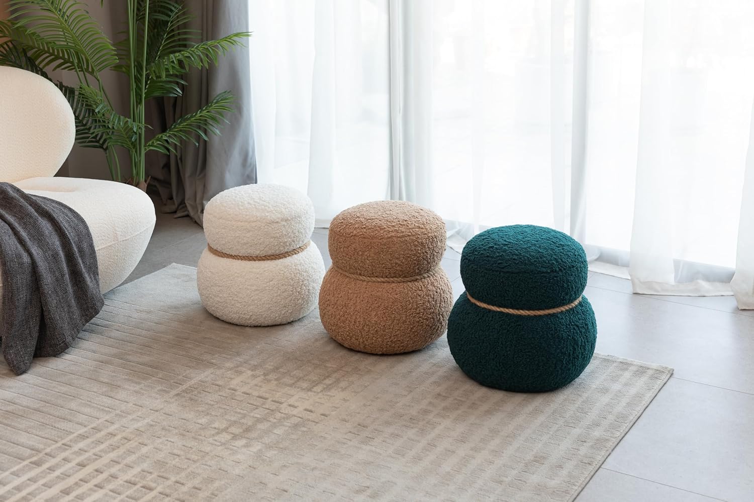 MEETAKING Small Round Foot Stool, Teddy Fabric Footrest Ottoman Stool with Non-Skid Legs, Modern Footstools Step for Couch, Desk, Office, Living Room (Beige)