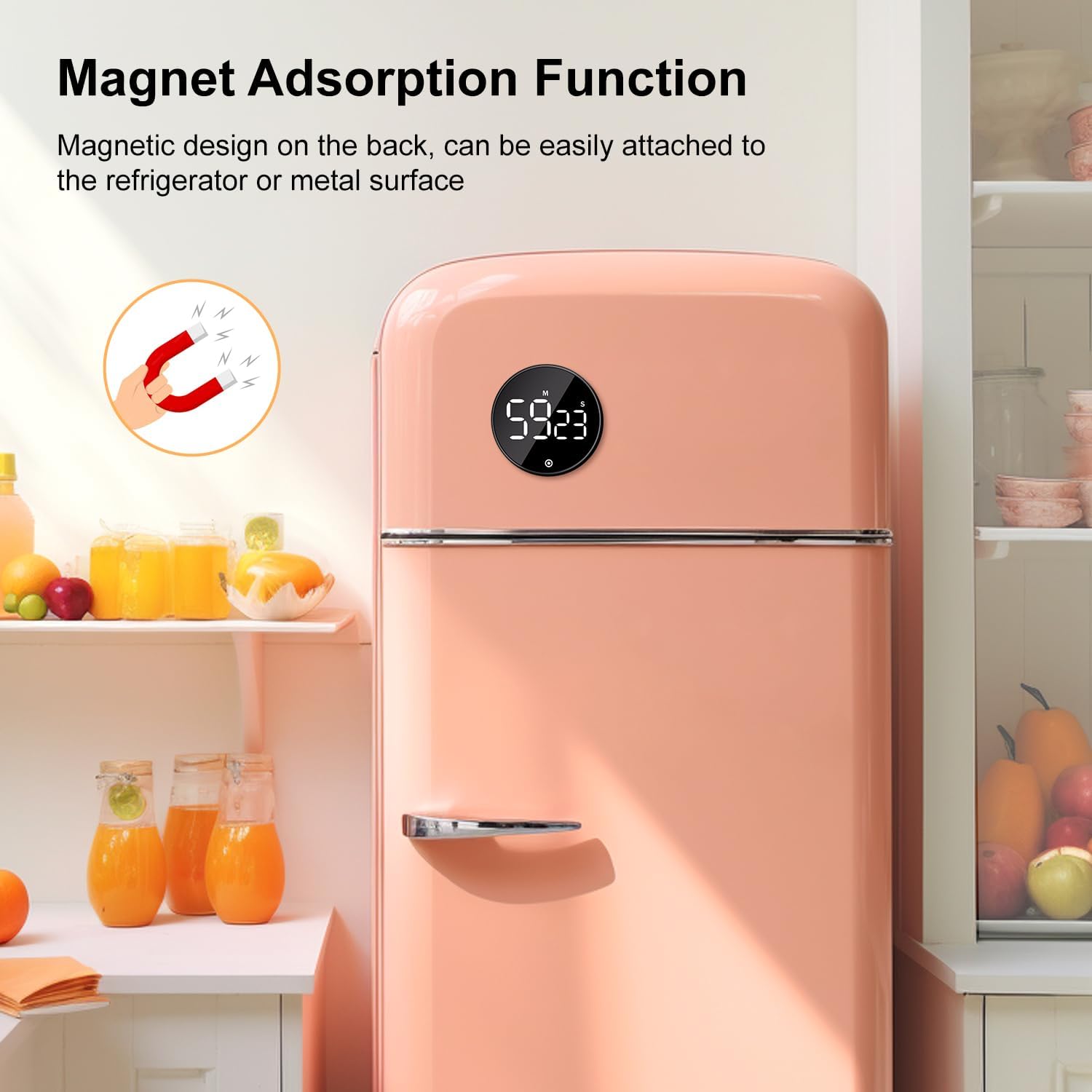 - Countdown and Countup timer: According to your different needs to setting timer as the countdown or countup timer, the range of digital from 00:00 to 99:55, the time increases or decreases at the minimum 5 seconds when you adjust the digital. The back of the timer with strong magnets, which can be adsorbed metal materials of the gym, firmly and no-slipping, you can one-hand operation operation.