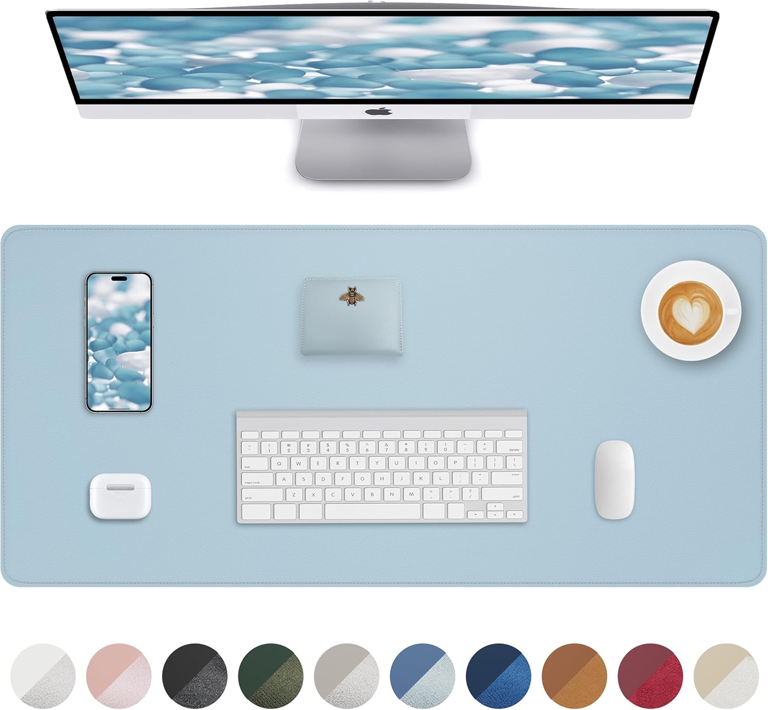 Non-Slip Desk Pad,Mouse Pad,Waterproof PVC Leather Desk Table Protector,Non-Slip PU Leather Desk Blotter, Easy Clean Laptop Desk Writing Mat for Office Work/Home/Decor(Light Blue, 24" x 13.7")
