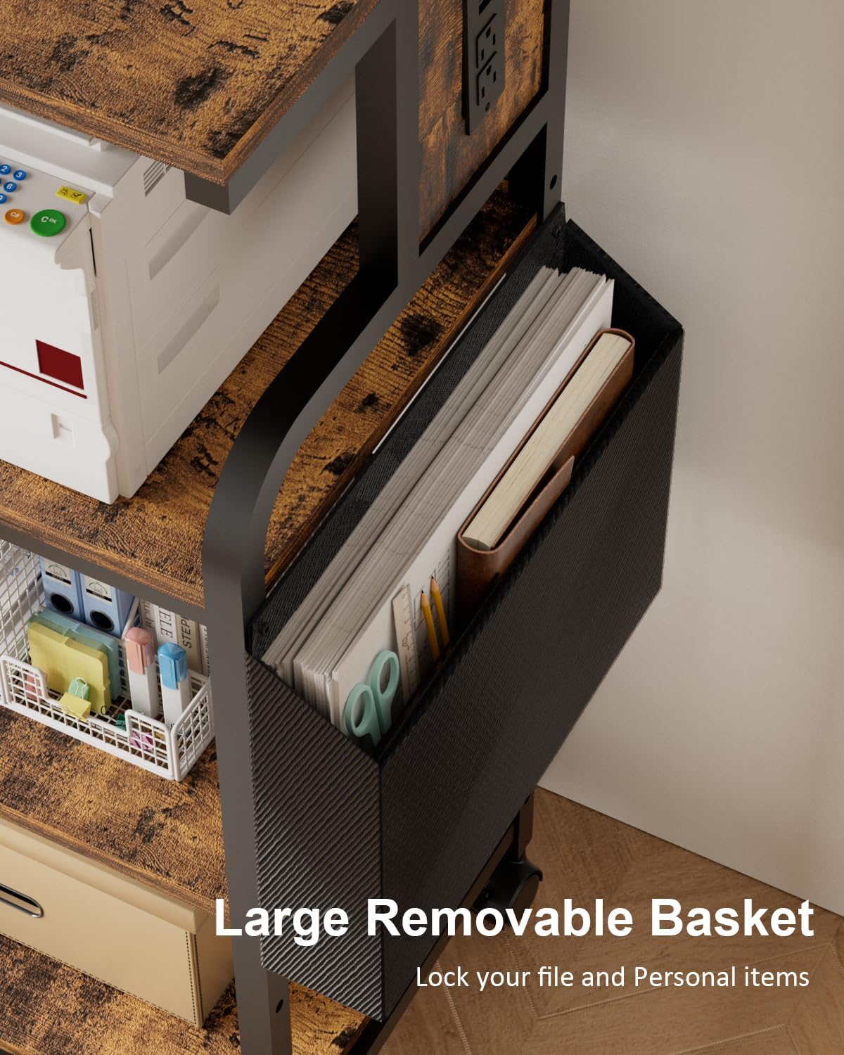 - SIDE INTEGRATED CHARGING STATION: This printer table includes a built-in charging station with 2 AC outlets and 2 USB ports, allowing you to charge multiple devices. The side design minimizes cord tangling, keeping your workspace neat.