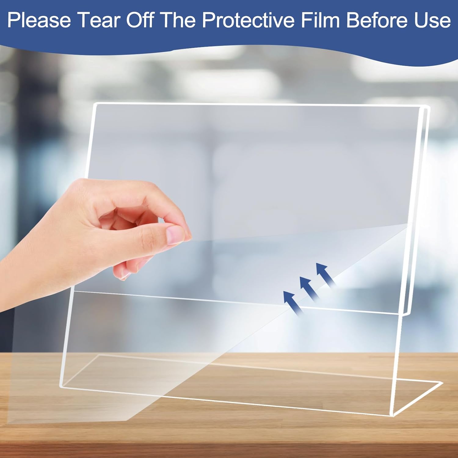Slanted Back Acrylic Sign Holder 8 x 10 Horizontal, Acrylic Stands for Display 10 x 8, Clear Tabletop Plastic Paper Sign Holder for Office, Home, Restaurant (6 Pack 10x8 Inches)