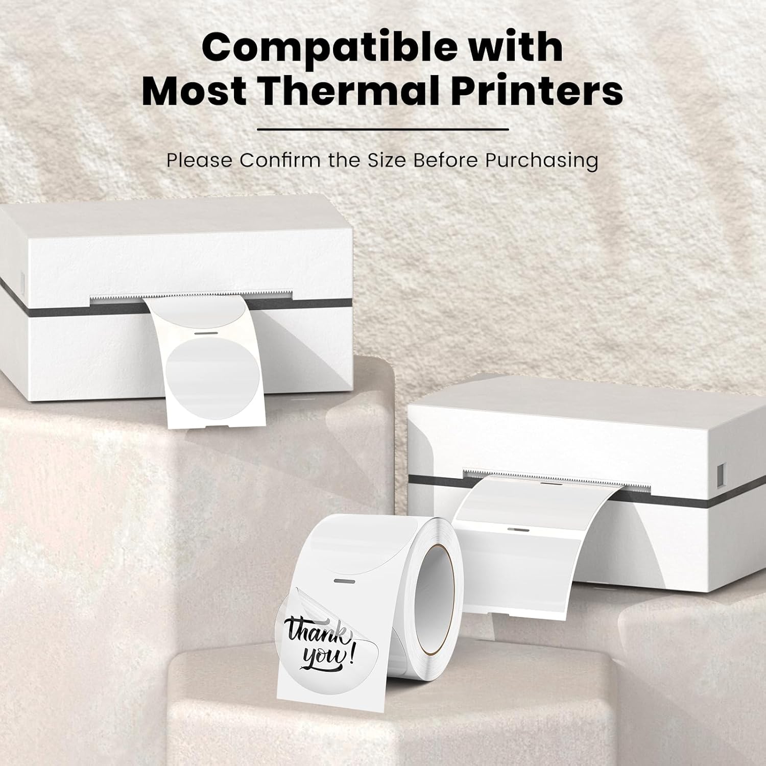 - Package: Print size of FINDAT transparent round thermal stickers is 2" with 300 pieces per roll. Suitable for most direct thermal printers. Note: Not for mini printers,such as M110, M120, M220, T50m Pro.