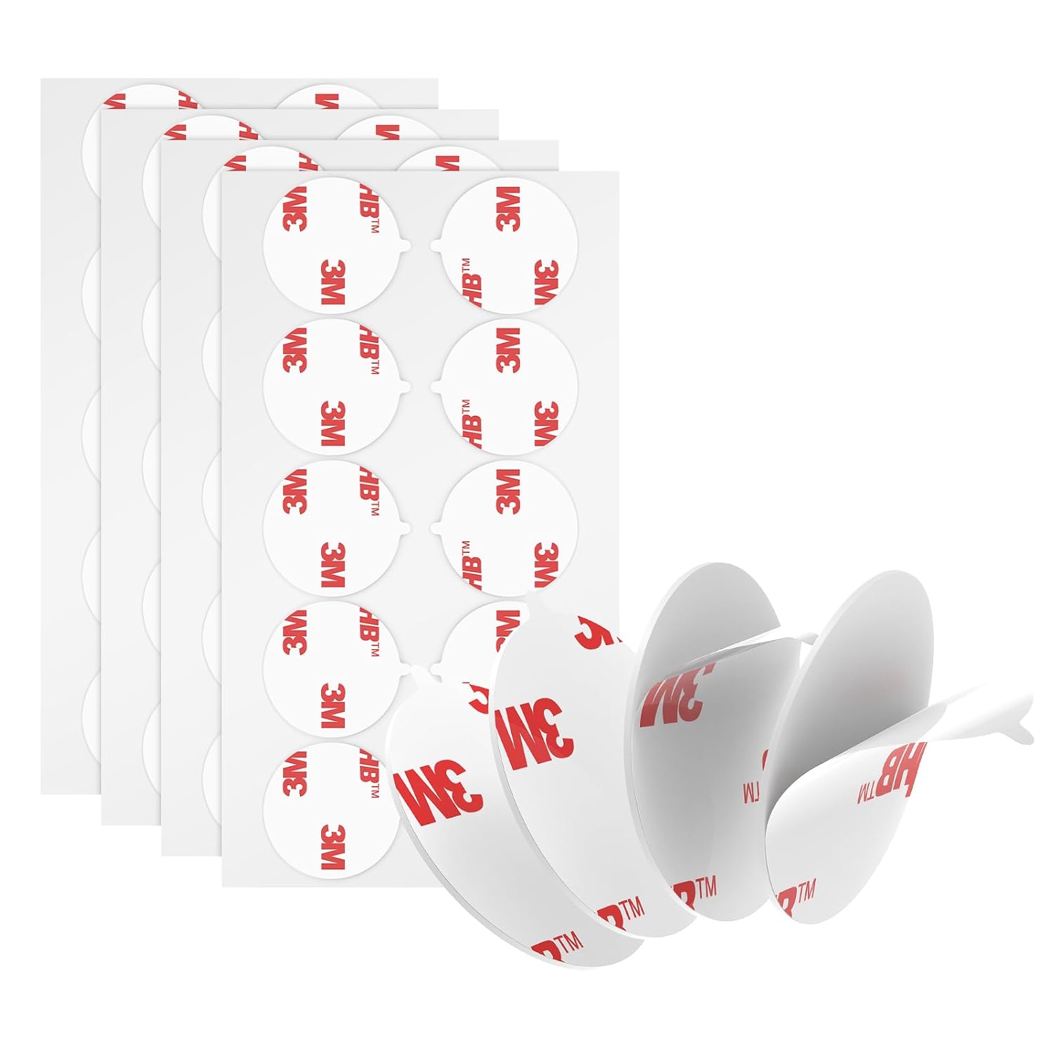 - EASY TO USE: For optimal results, clean the surface thoroughly and ensure it is dry before applying. At room temperature, the adhesive reaches 50% of its maximum strength in 20 minutes, 90% in 24 hours, and 100% in 72 hours. Each round pad includes a small tab for easy peeling, preventing adhesive contamination and simplifying installation.