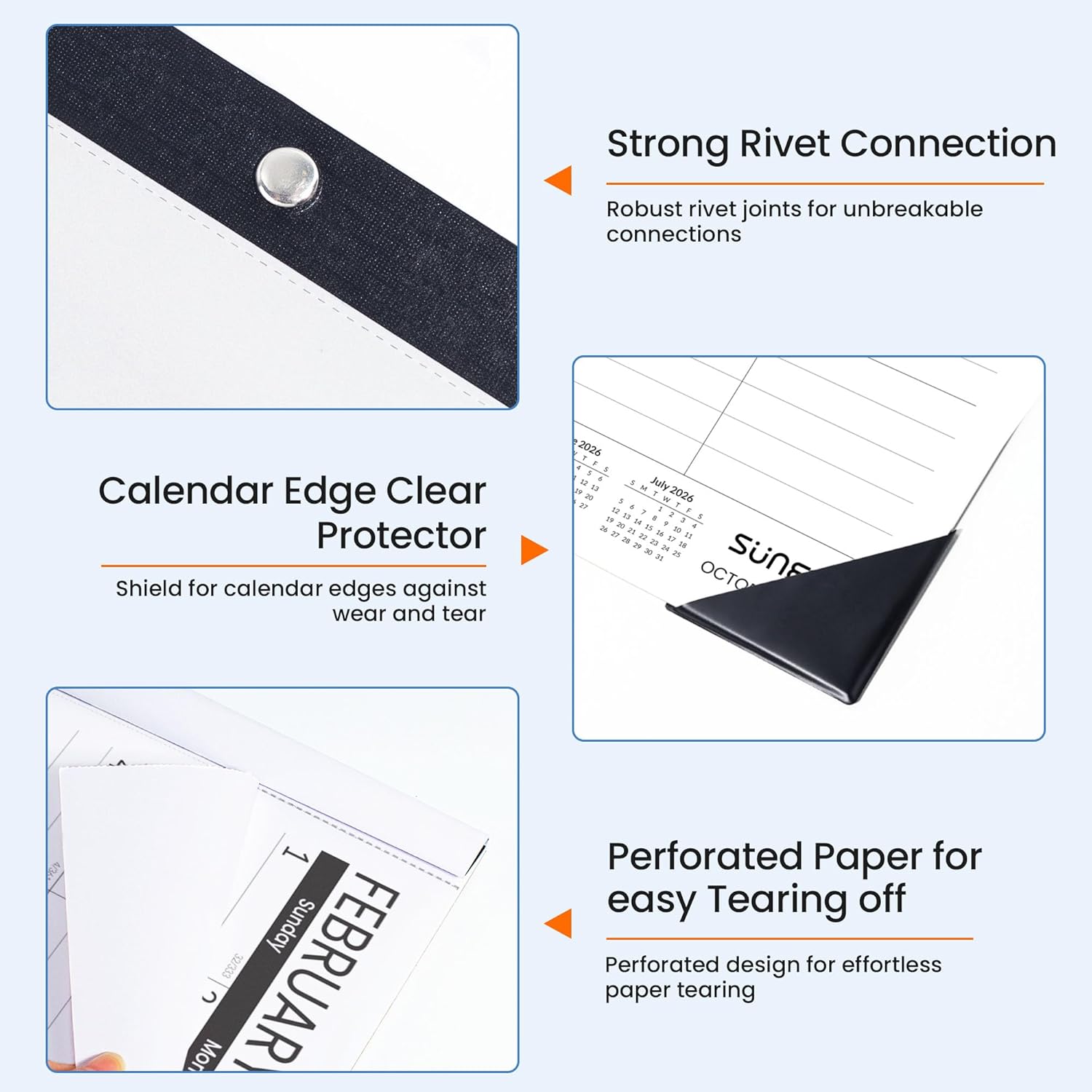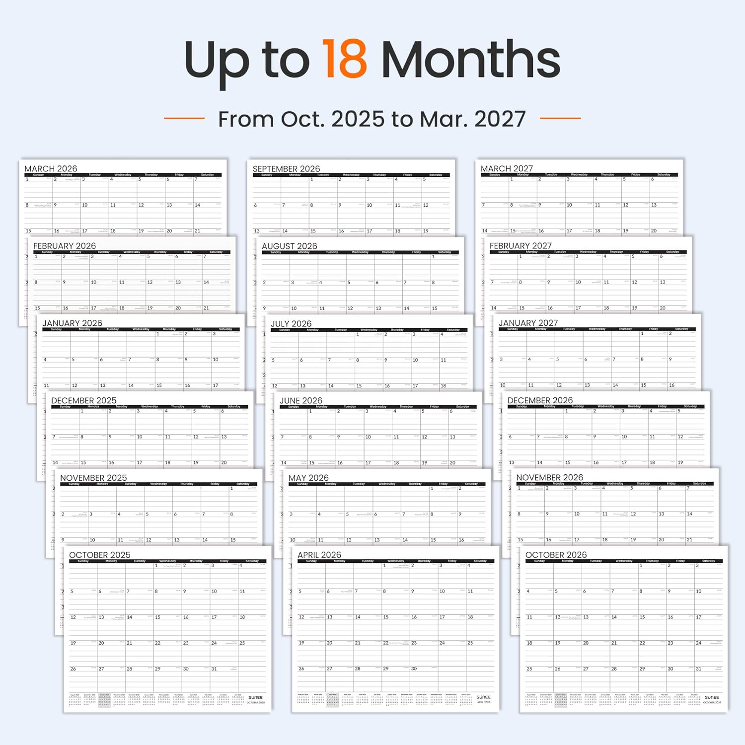 SUNEE Desk Calendar 2025-2026 Large 22x17 from October 2025 to March 2027, Extra Large Desktop Monthly Calendar Pad 18 Months For Teacher or Family, Desk Top, Black