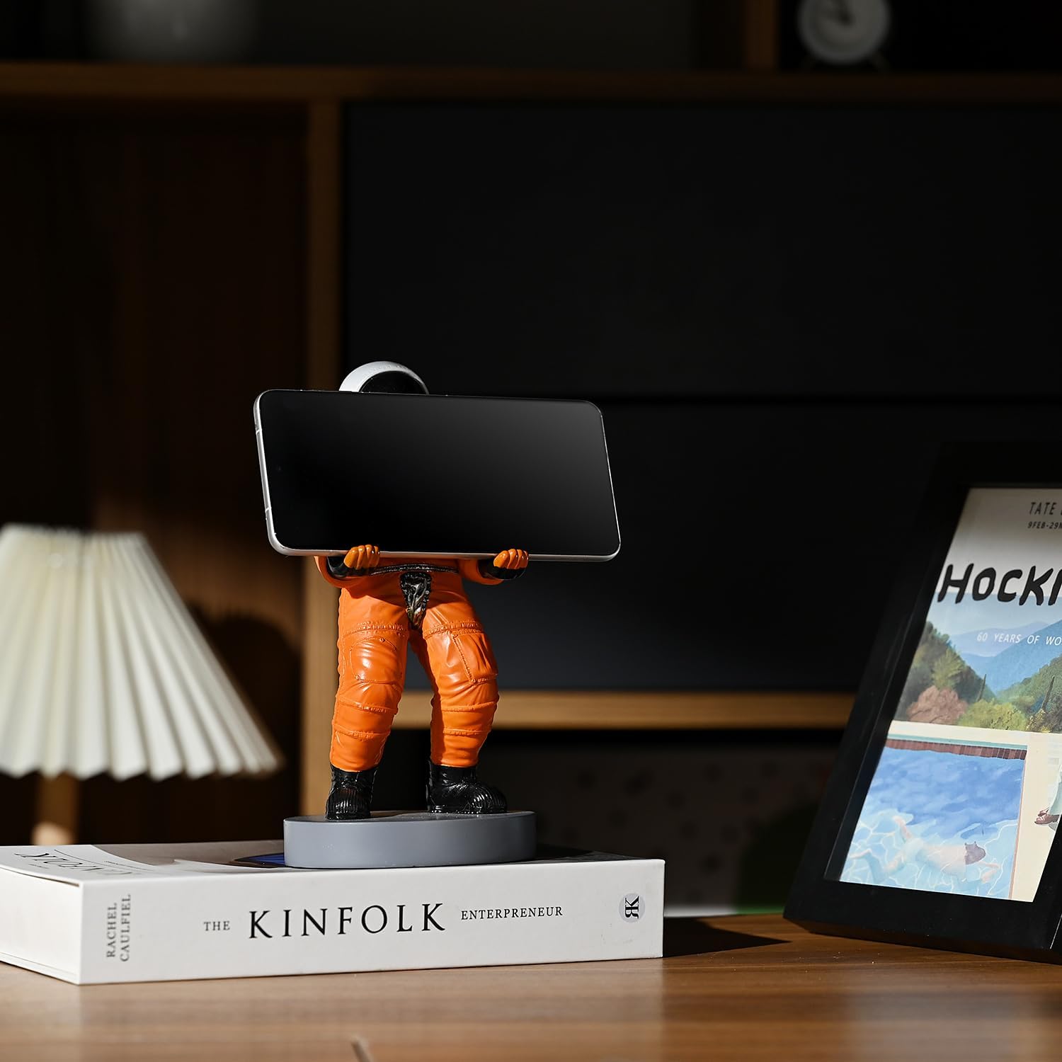 - This astronaut can easily hold and display most handheld electronic devices, mobile phones, TV remote controls, pens, letter opener, mini flashlight, spork etc. with their hands!