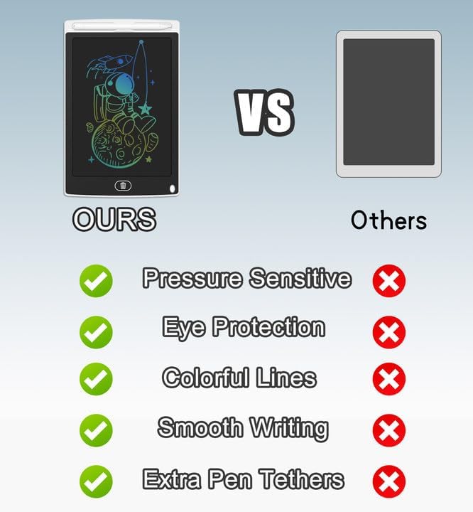 - Eye Protection: New version writing pads for kids come with pressure-sensitive screen without radiation and no glare. No harm to eyesight even if kids play with it for a long time. Kids will enjoy the freedom of creation while releasing their imagination at kindergarten